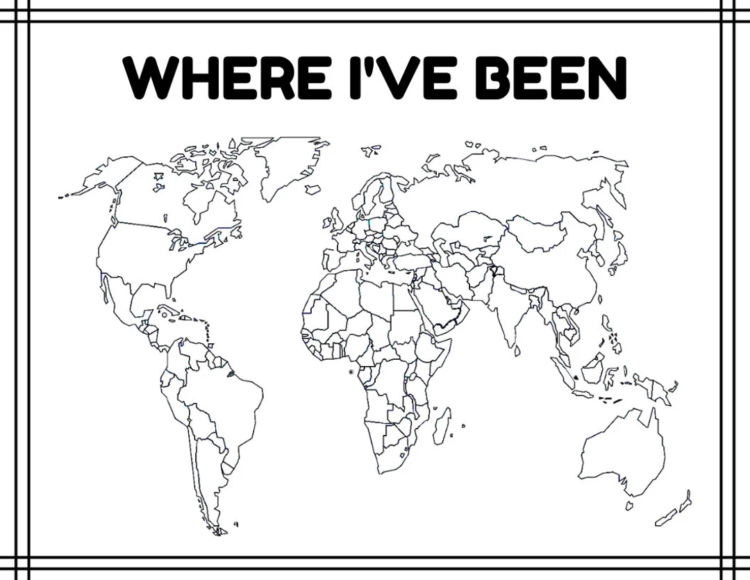Where I ve Been A Blank Map Of The World outline Colorable Maps Printable Digital Print Coloring Sheets plus Where We ve Been Etsy