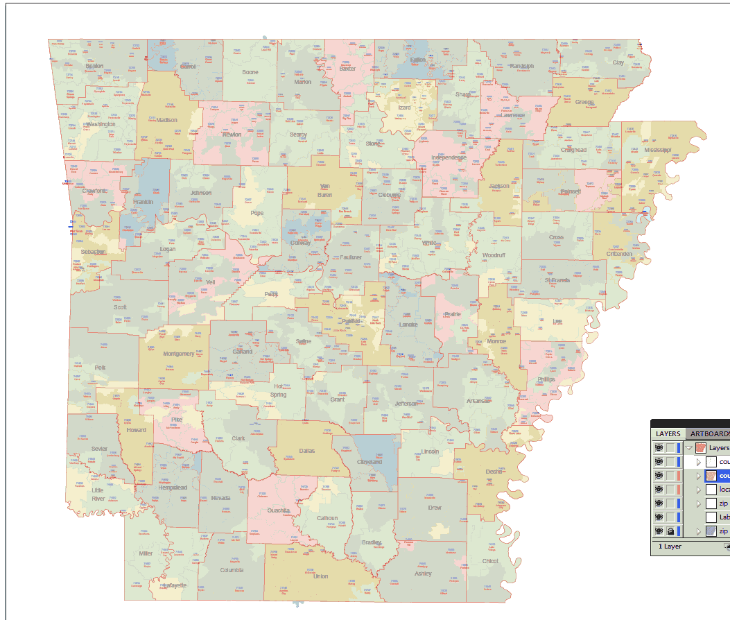 Arkansas Digital ZIP Code Map Printable Vector Maps