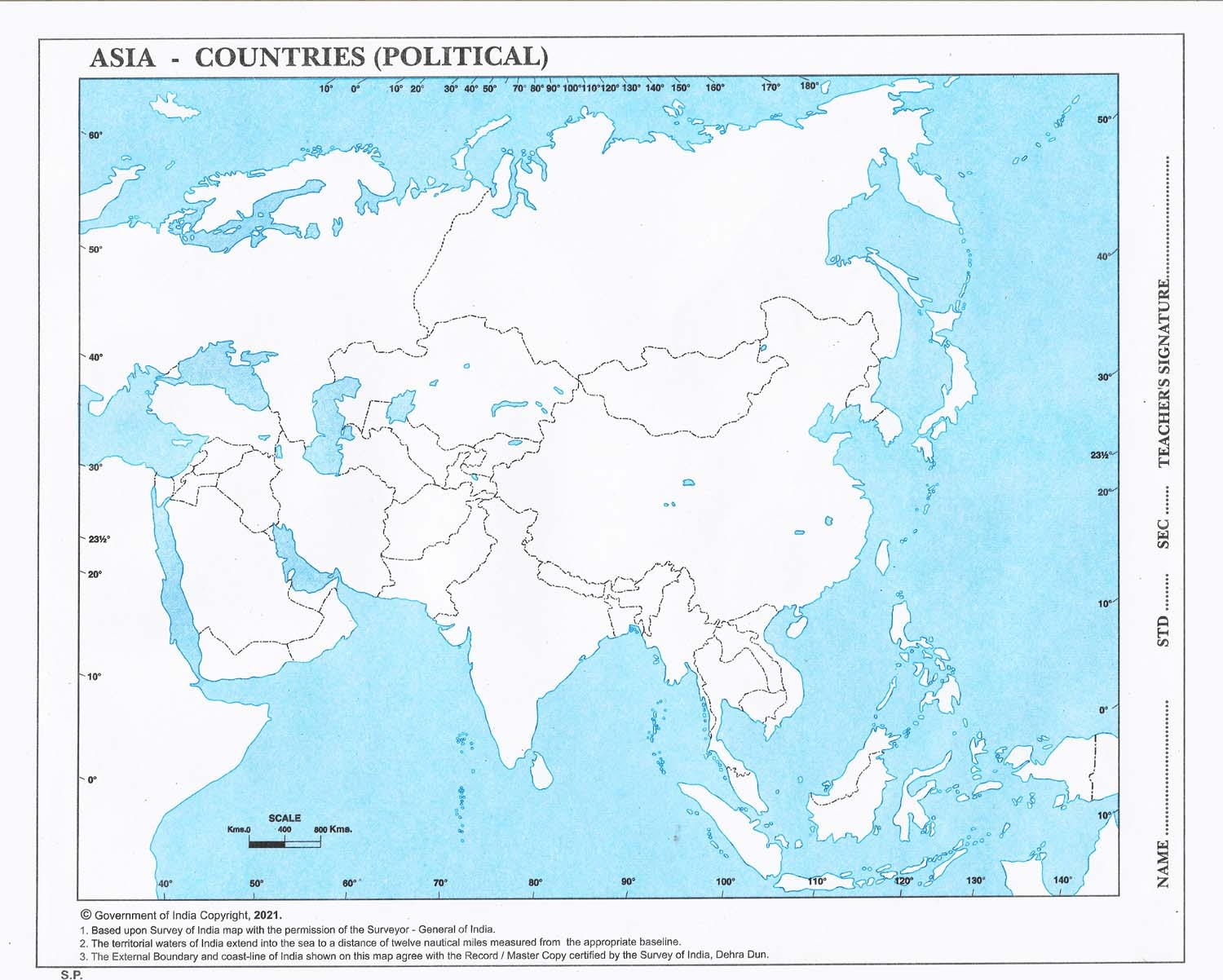 Asia Map Outline Printable