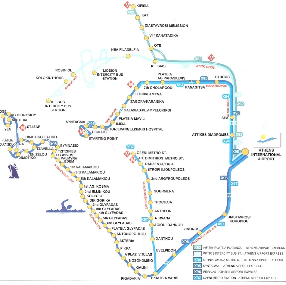 Map Of Athens Metro Metro Lines And Metro Stations Of Athens