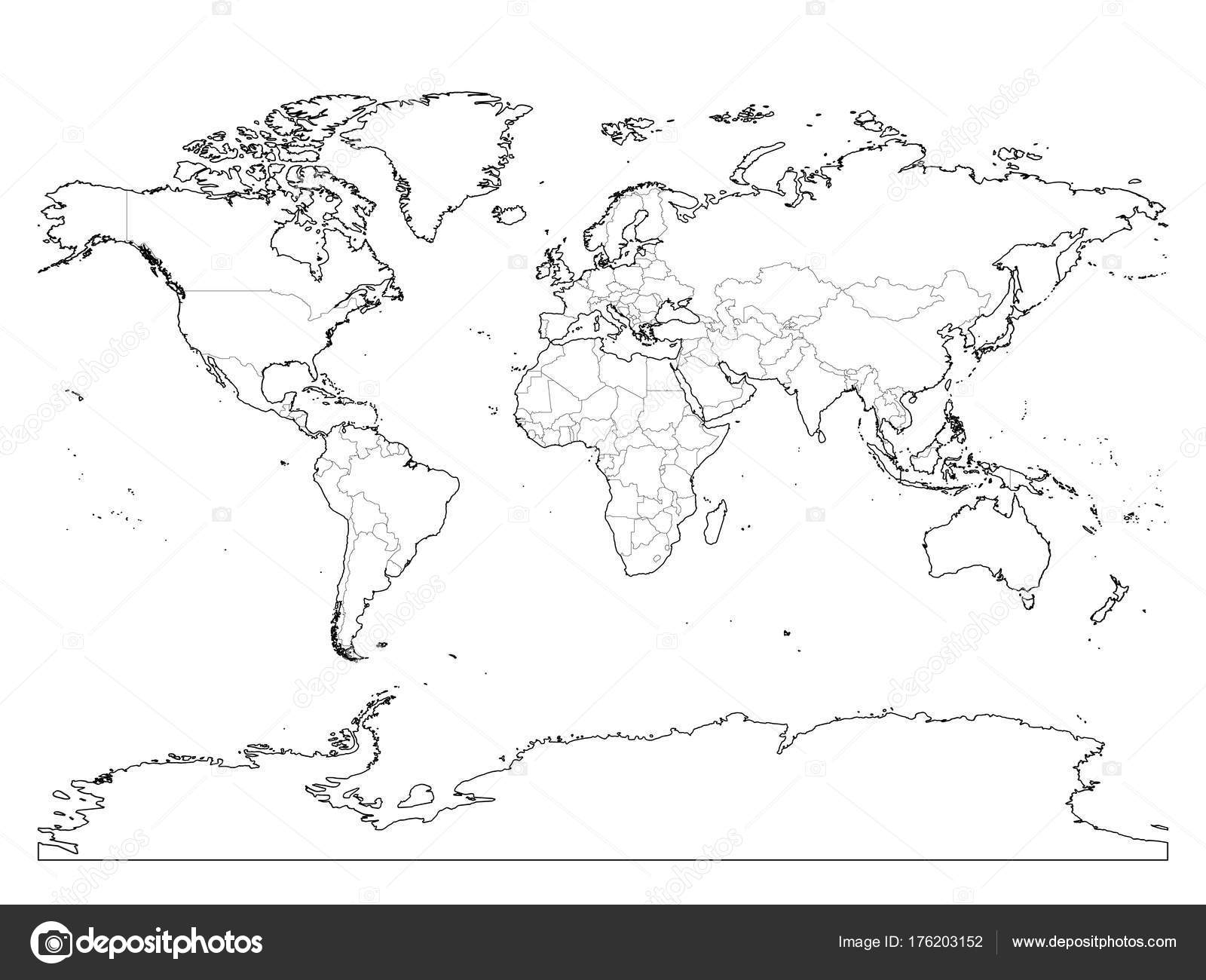 World Map Outline Thin Country Borders And Thick Land Contour On White Background Simple High Detail Line Vector Wireframe Stock Vector By pyty 176203152