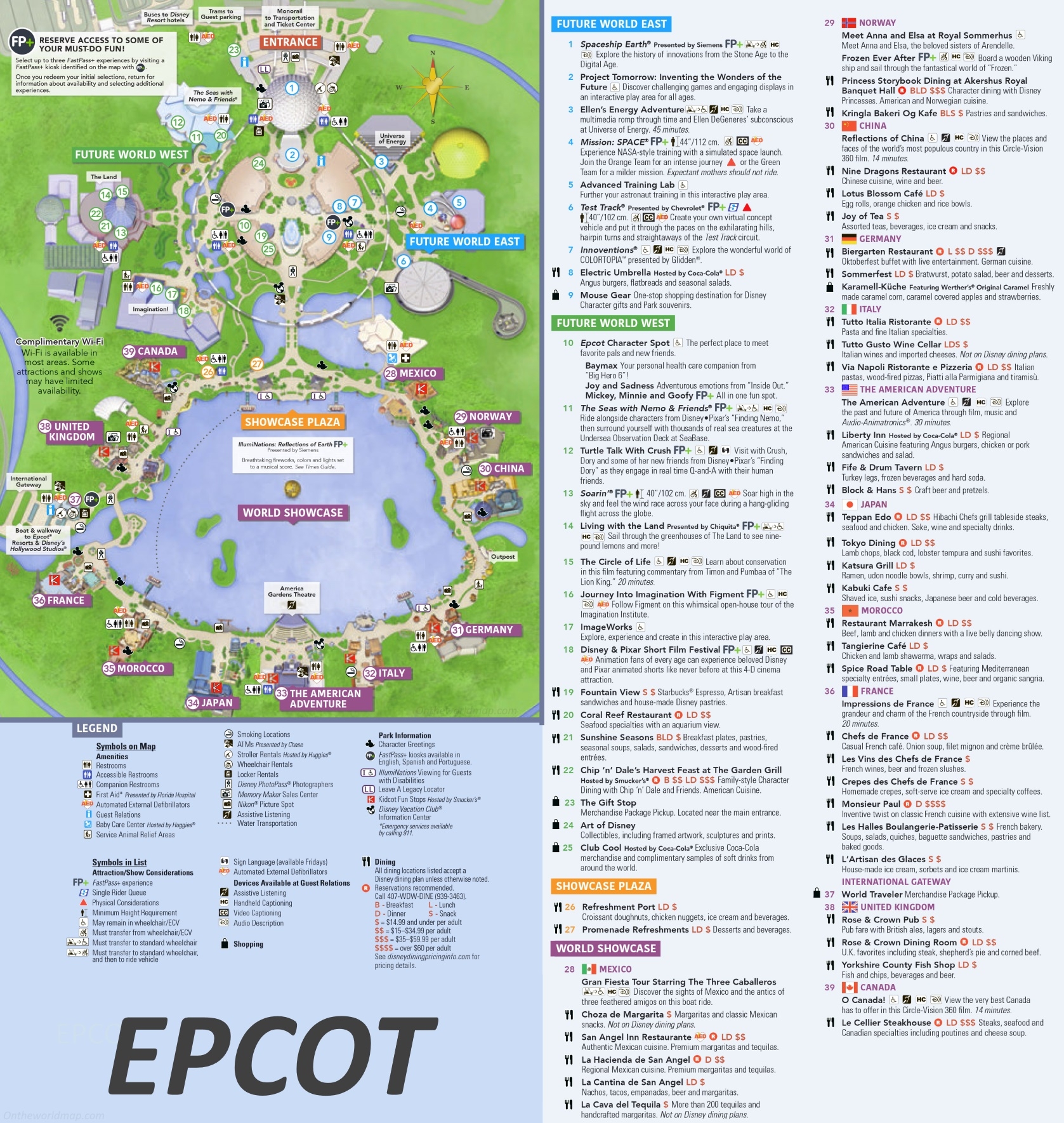 The map will show you the layout of the park, including the different themed areas like Future World and World Showcase. You’ll also find the locations of restrooms, dining spots, and entertainment venues, helping you plan your day efficiently.
