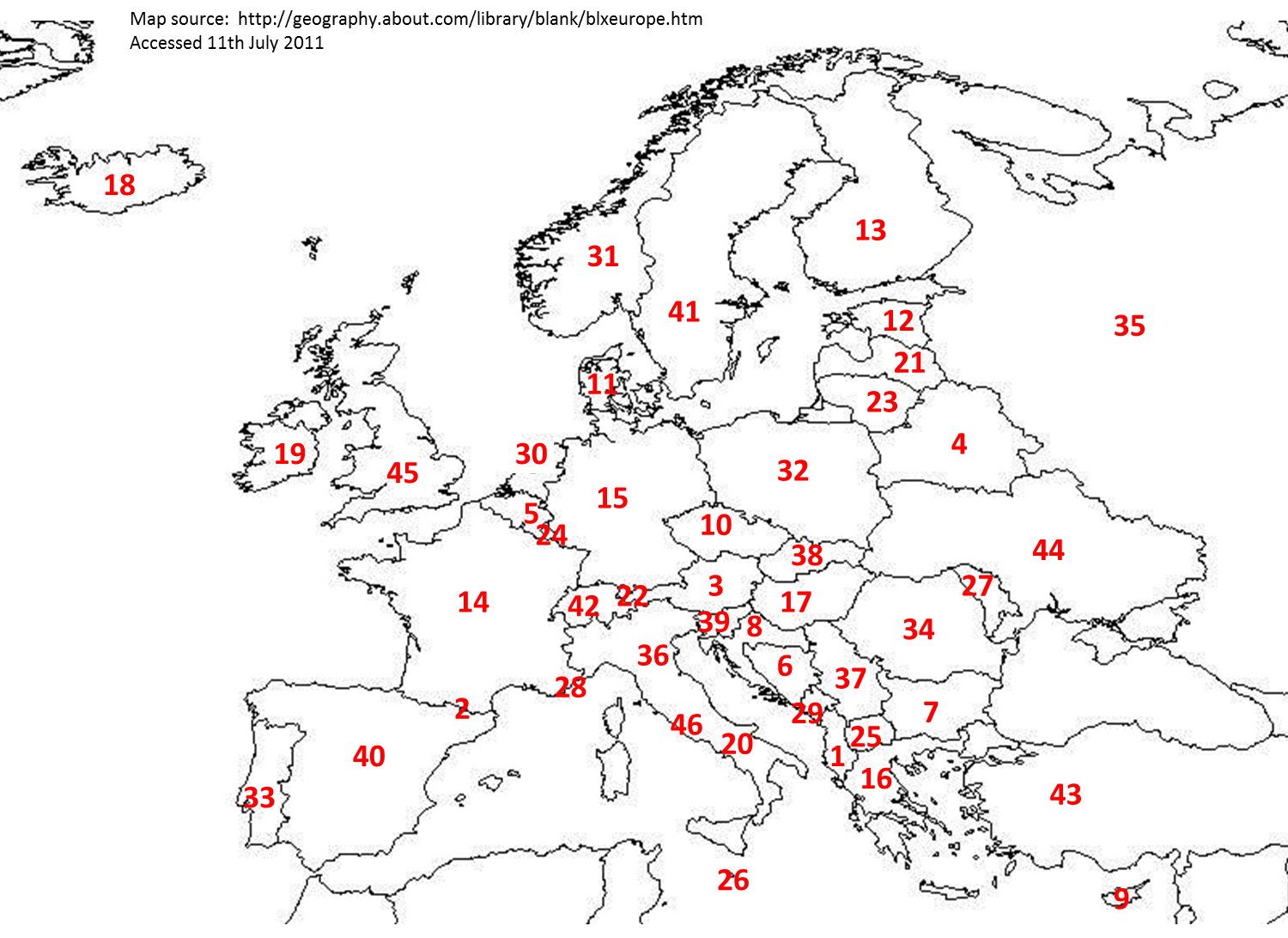 Europe Countries Map Quiz Printable