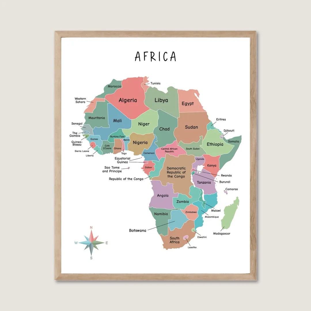 Africa Map Education Printable Map Of Africa Wall Art Africa Colorful Homeschool Learning Montessori Materials Africa Wall Art Download Etsy