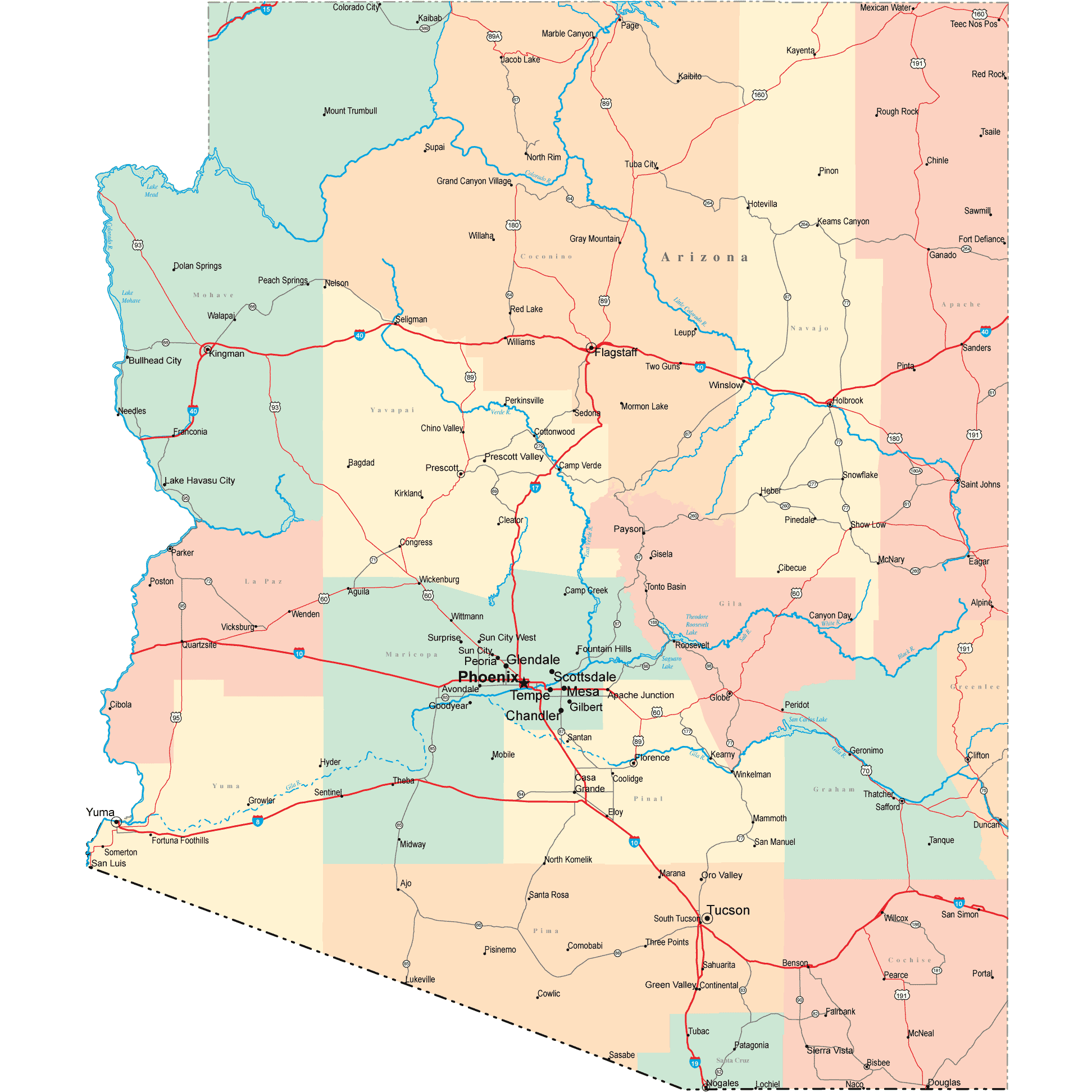 Free Printable Arizona City Map