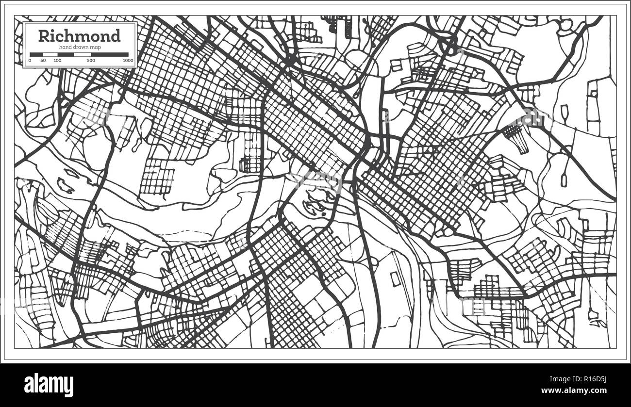 Richmond Virginia USA City Map In Retro Style Outline Map Vector Illustration Stock Vector Image Art Alamy