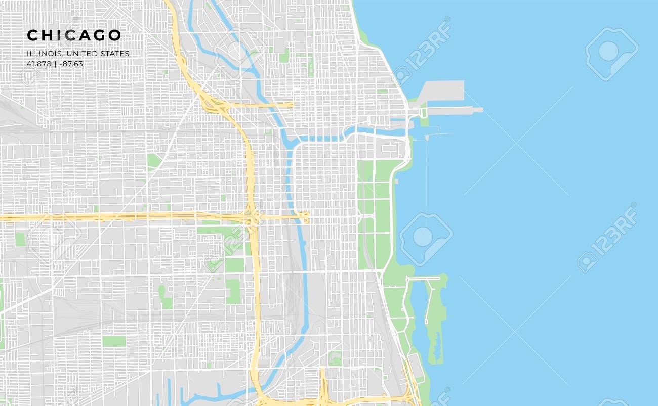 Printable Streetmap Of Chicago Including Highways Major Roads Minor Roads And Bigger Railways The Name Of The City And The Geographic Data Are Grouped And Can Be Removed If They Are Not