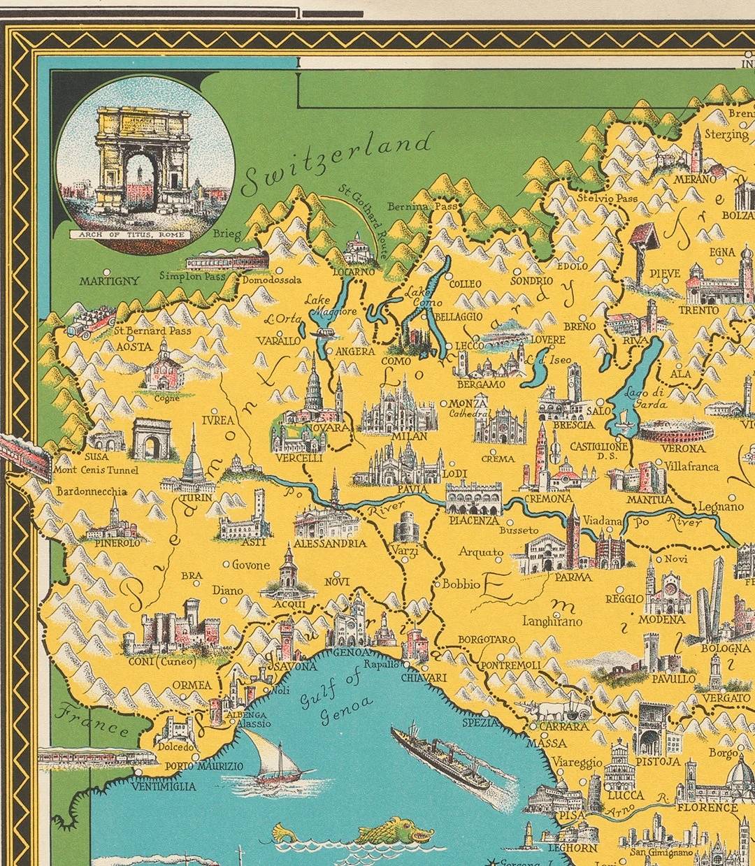 Pictorial Map Of Italy Vintage Restoration Hardware Home Deco Style Old Wall Reproduction Map Print Etsy