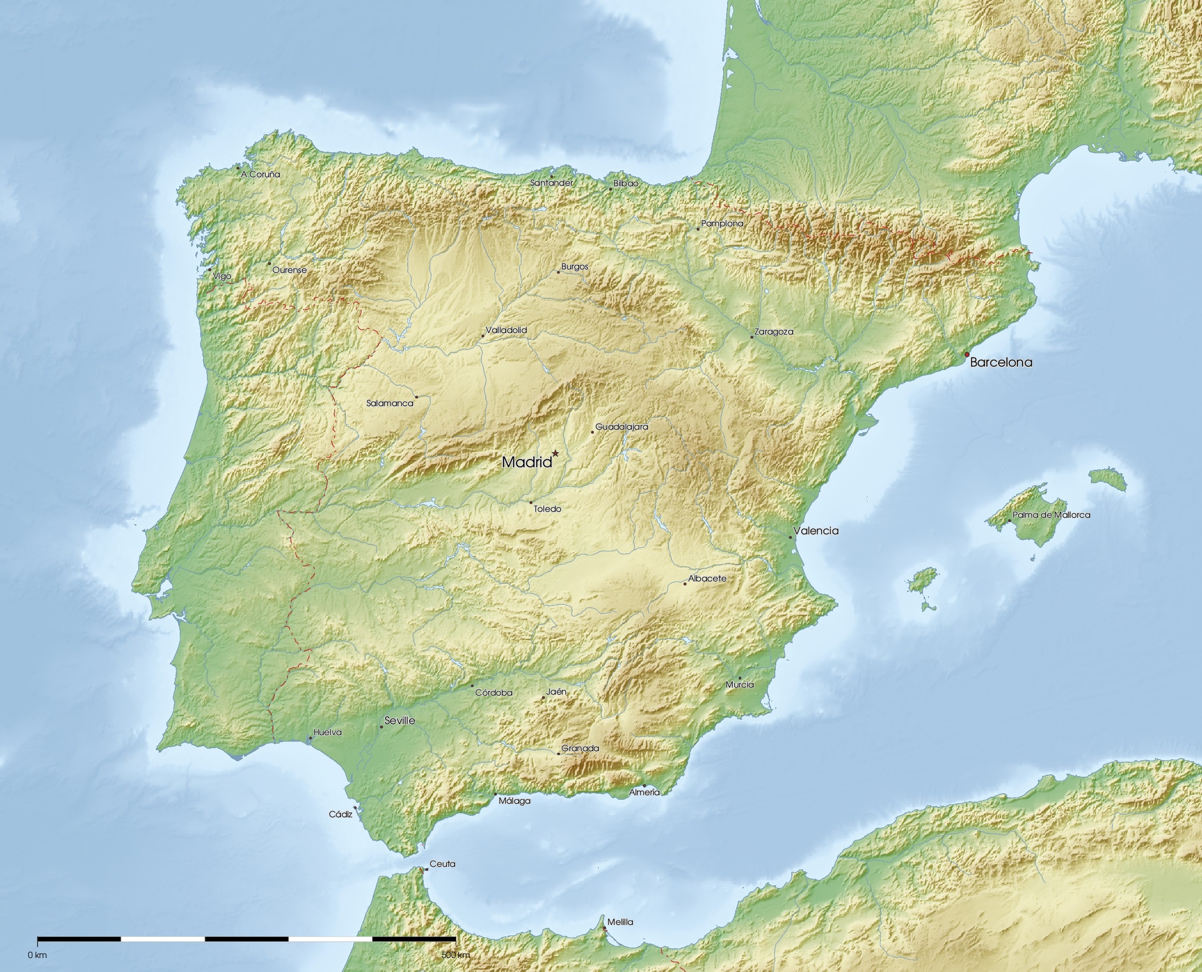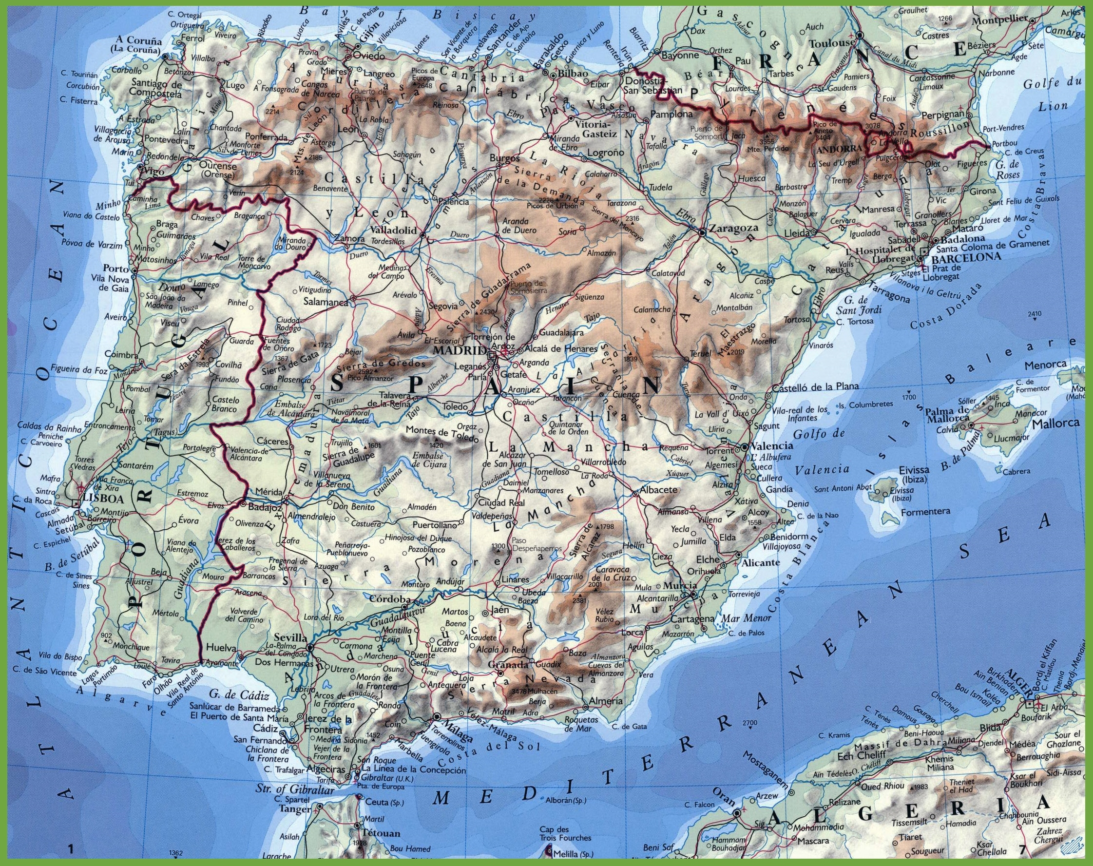 Physical Map Of Portugal And Spain Ontheworldmap