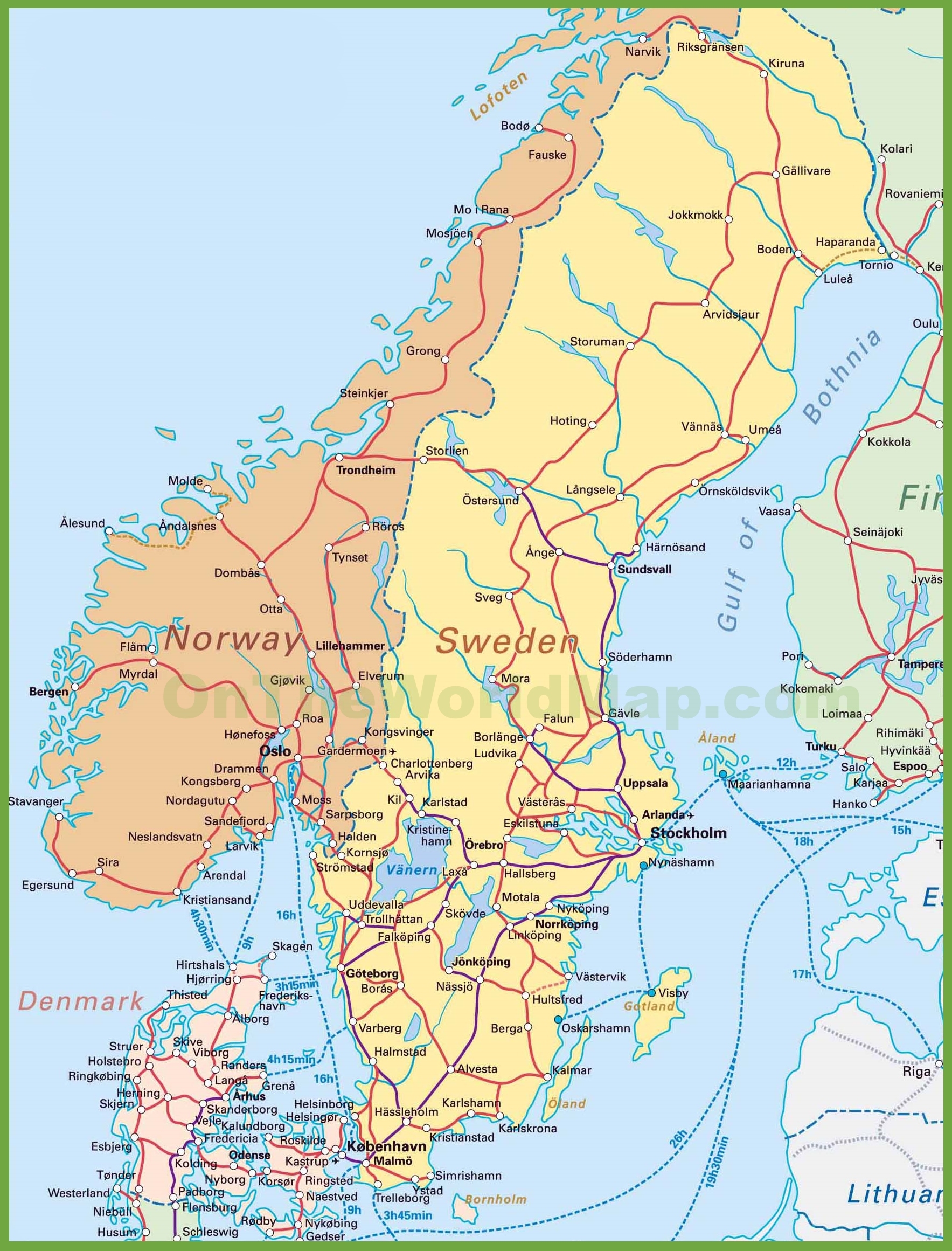 Map Of Sweden Norway And Denmark Ontheworldmap