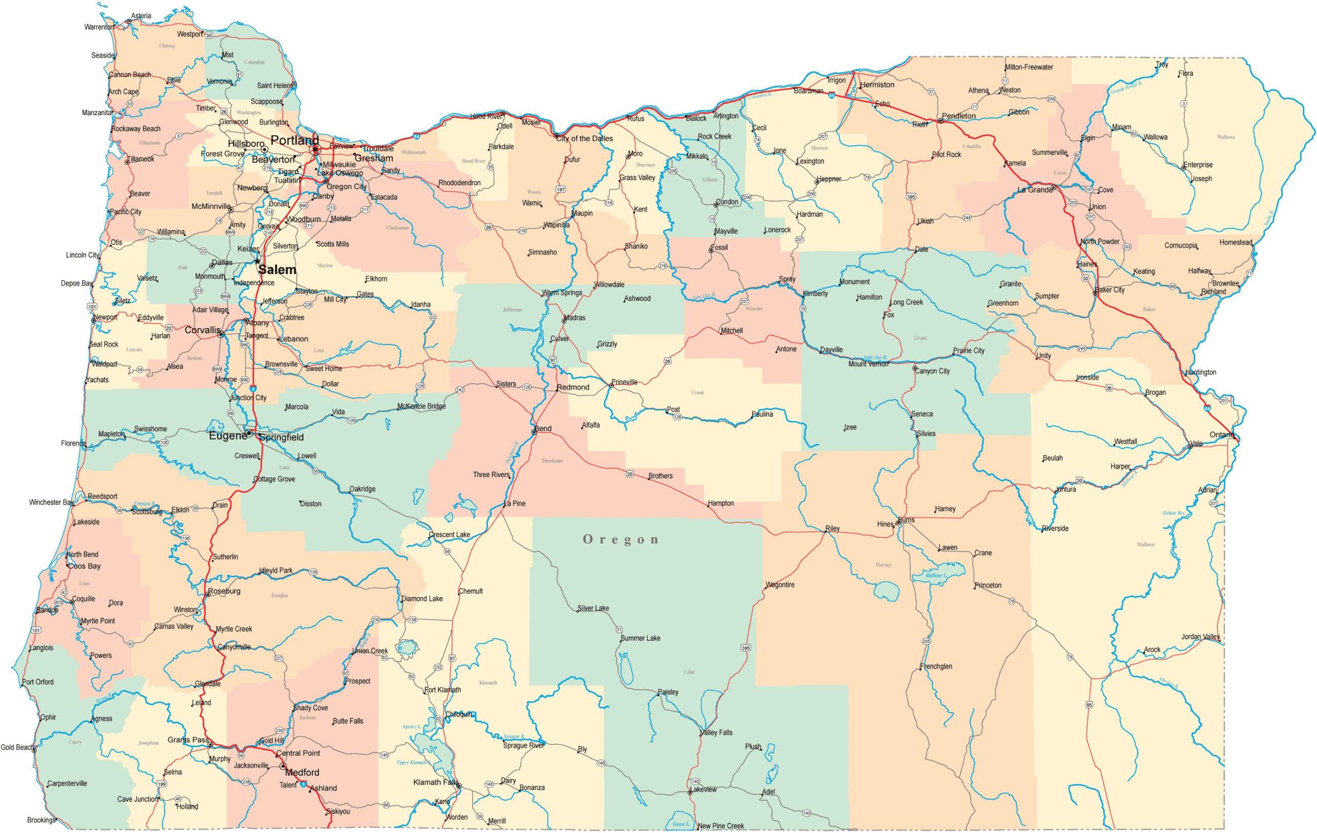 Free Printable Oregon Road Map