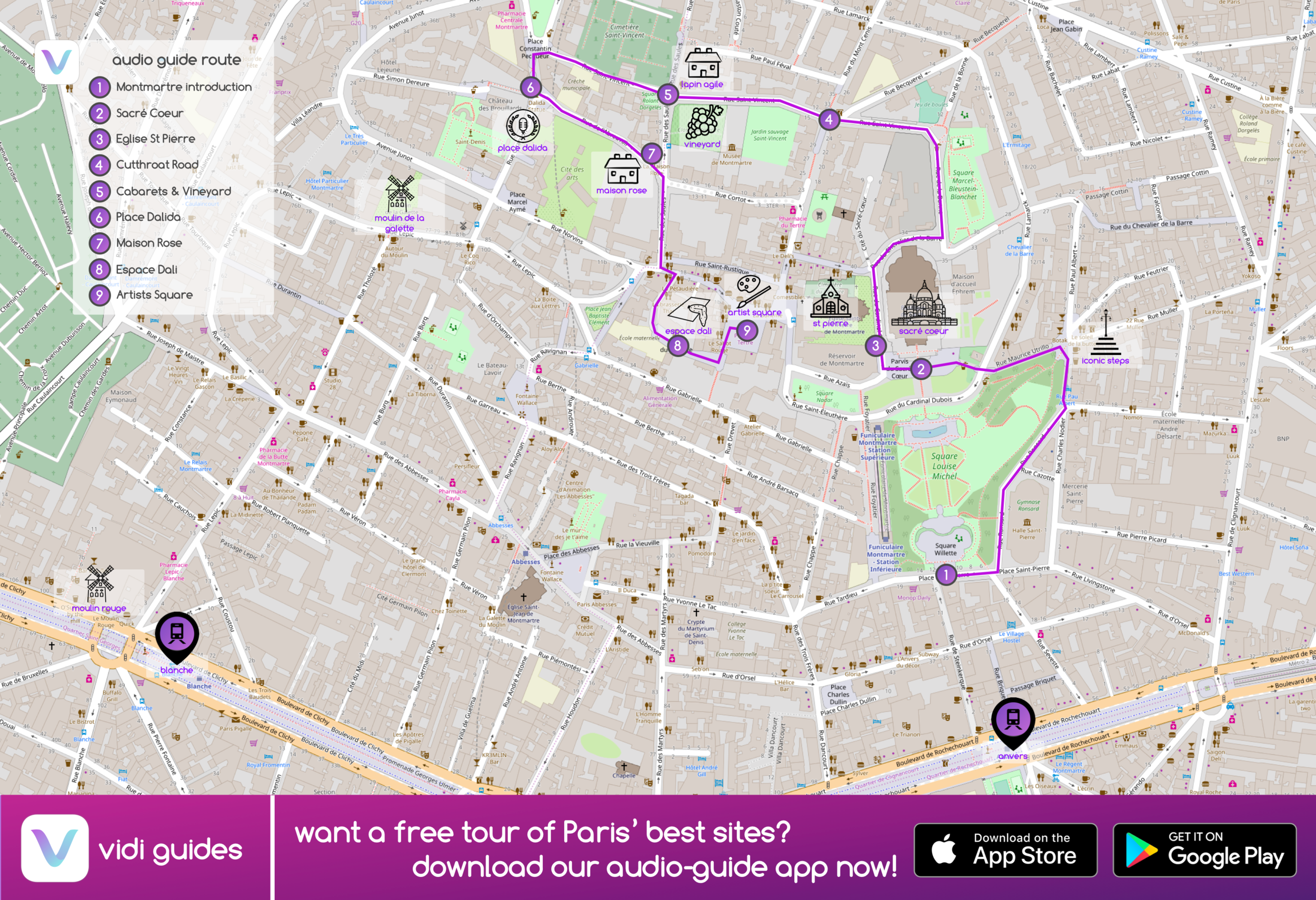 These maps are available online for free and can be easily downloaded and printed at home. They typically include detailed street maps, points of interest, and suggested walking routes to help you plan your day and navigate the city like a local.