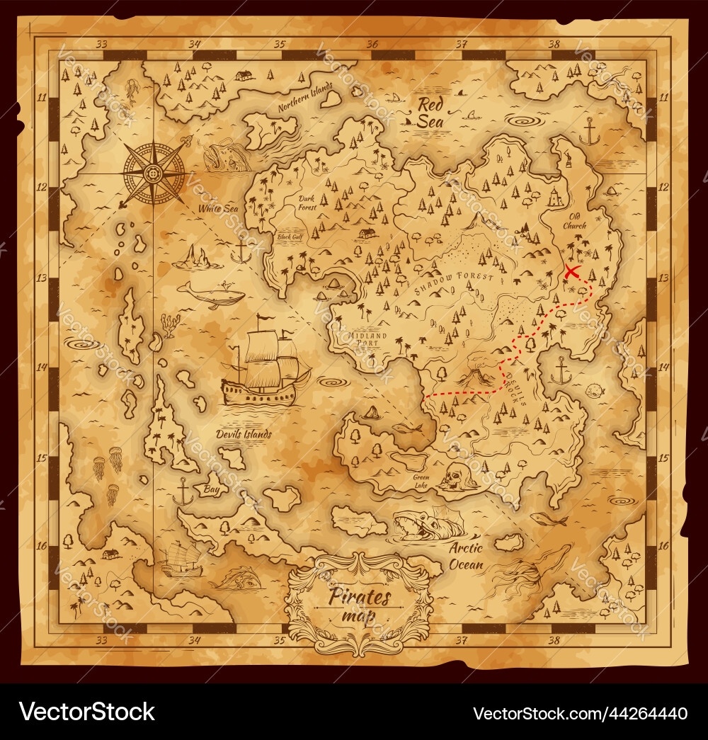 Old Pirate Treasure Map Worn Parchment Royalty Free Vector