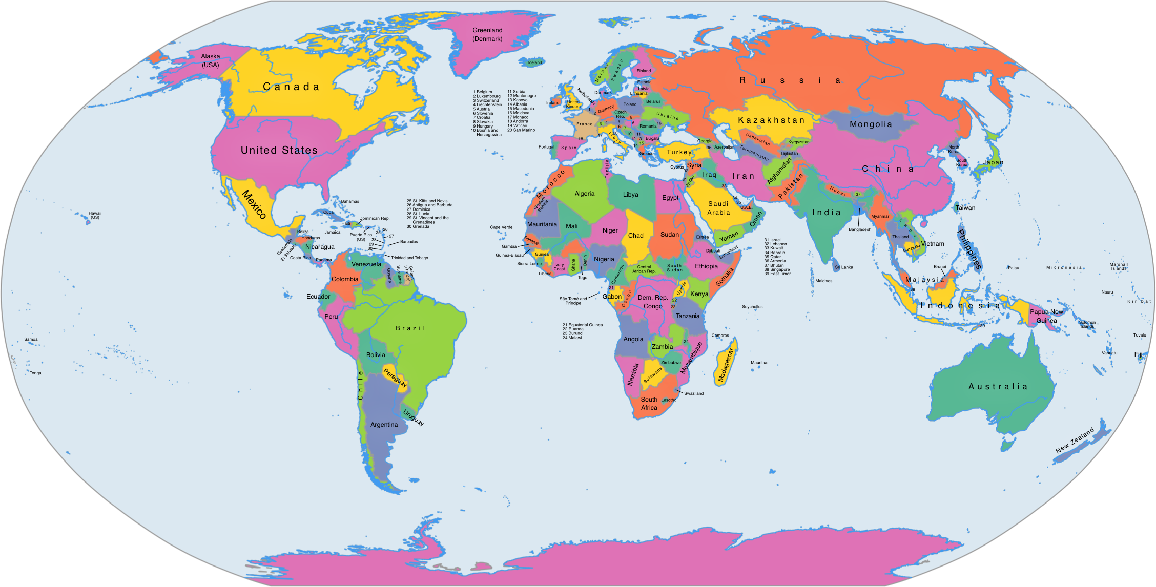 Free Printable Political World Map
