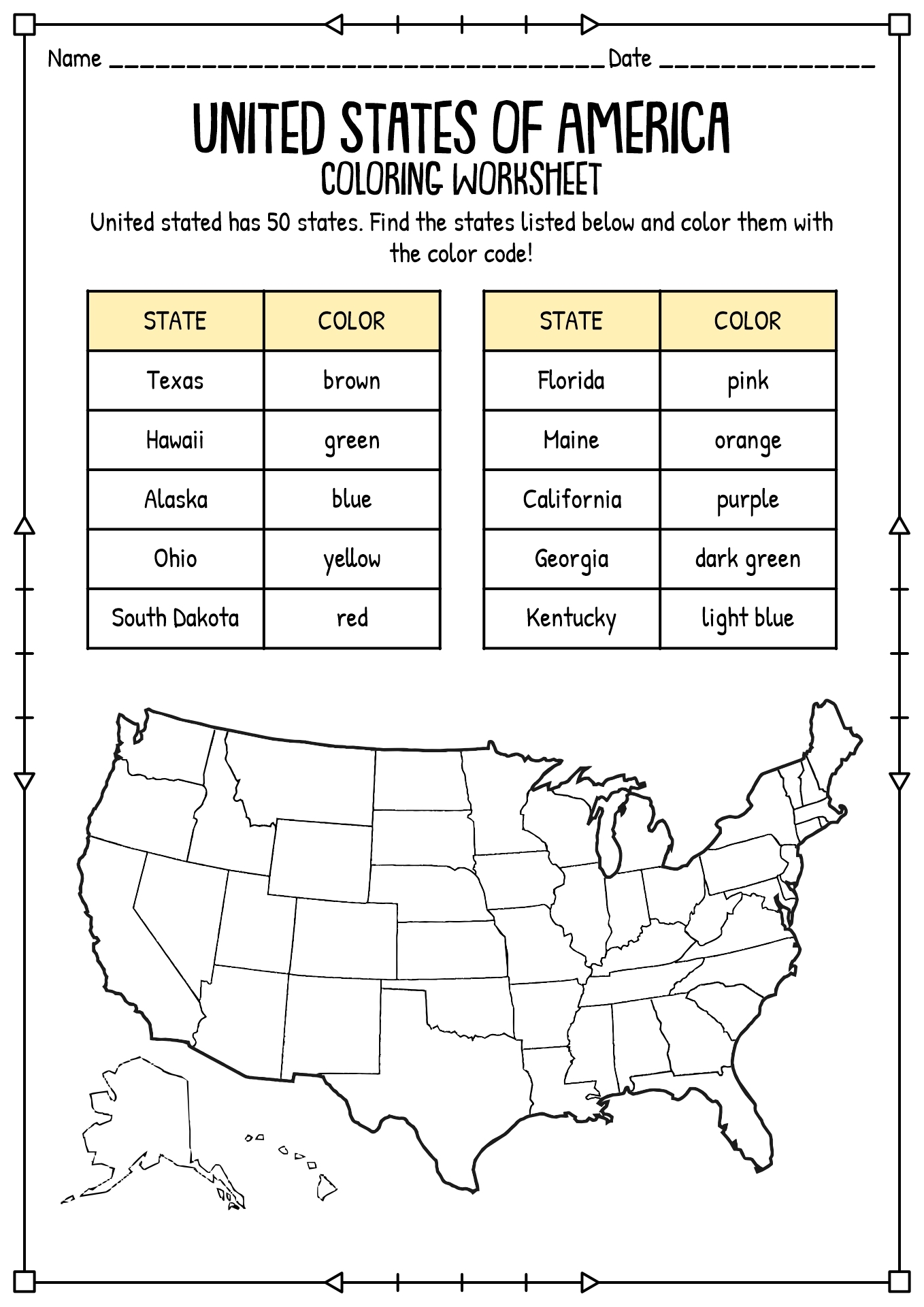 Get ready to put your geography skills to the test and have fun while doing it. Download our free printable USA map worksheet now and embark on a journey of discovery across the 50 states of America.