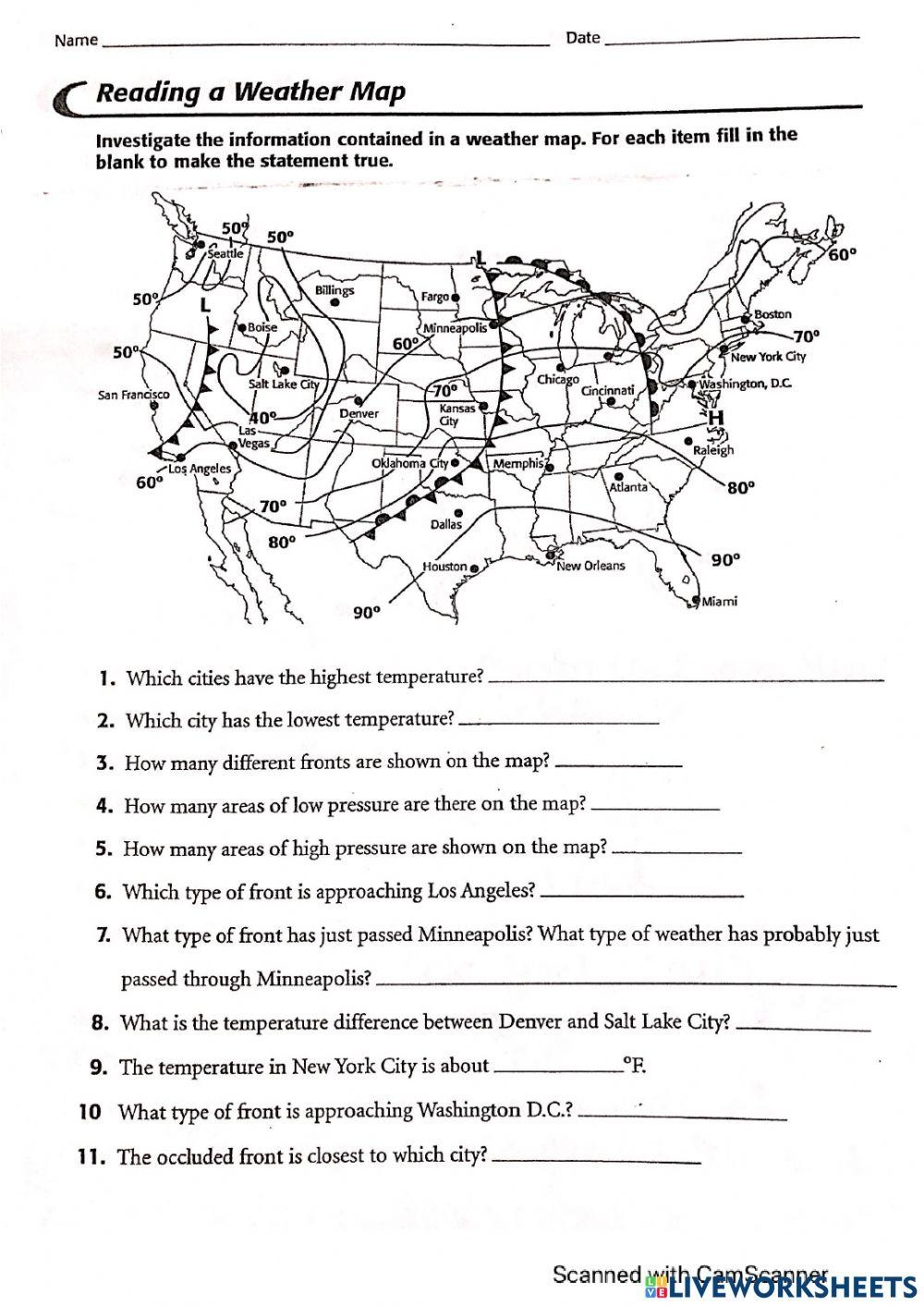 Weather Map Worksheet Live Worksheets Worksheets Library