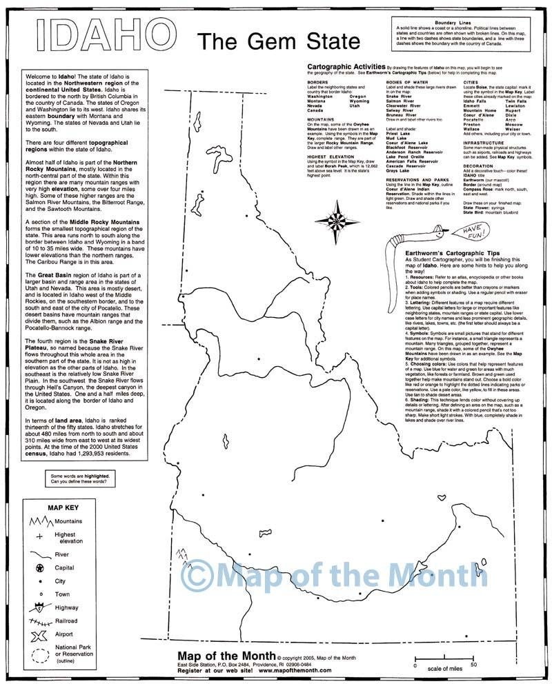 Idaho Map Blank Outline Map 16 By 20 Inches Activities Included