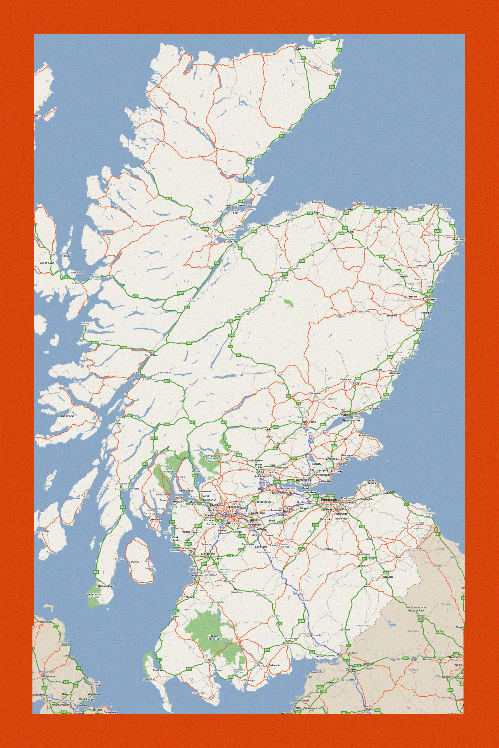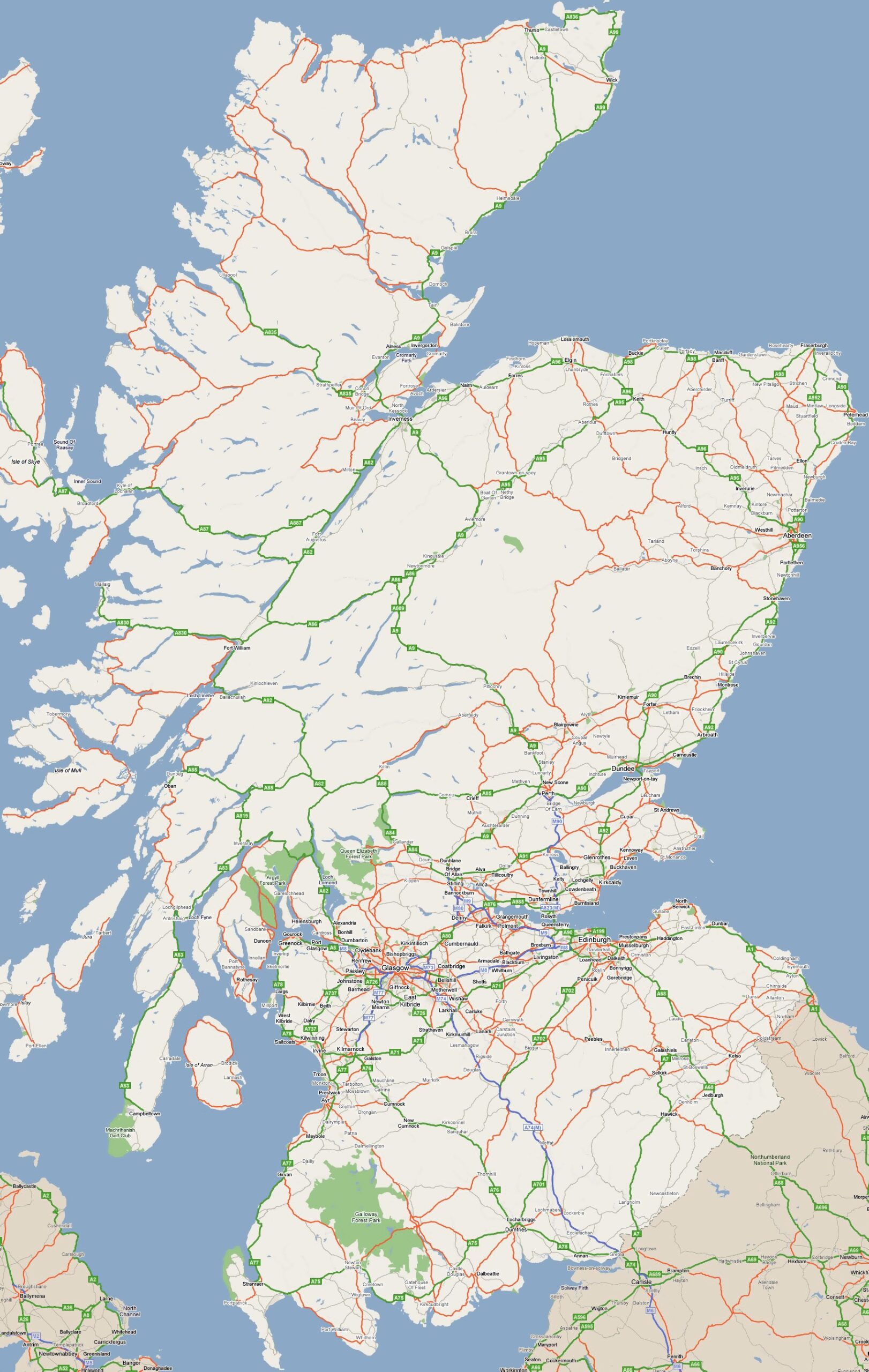 Full Page Road Map Scotland Printable