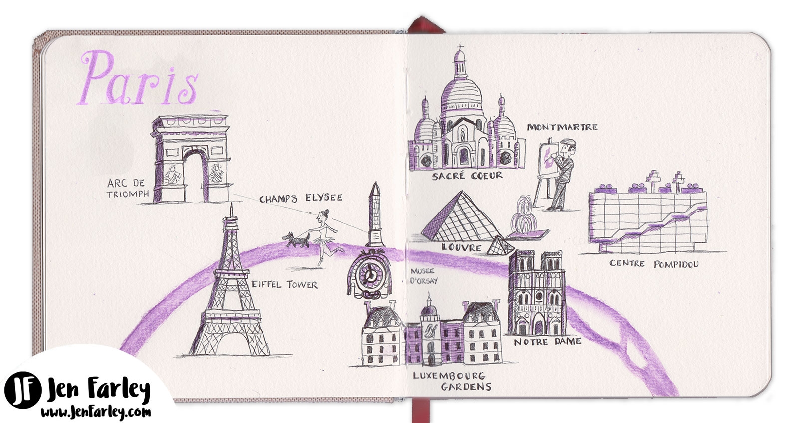 Illustrated Map Of Paris Landmarks Jennifer Farley Picture Books Illustration Maps Design