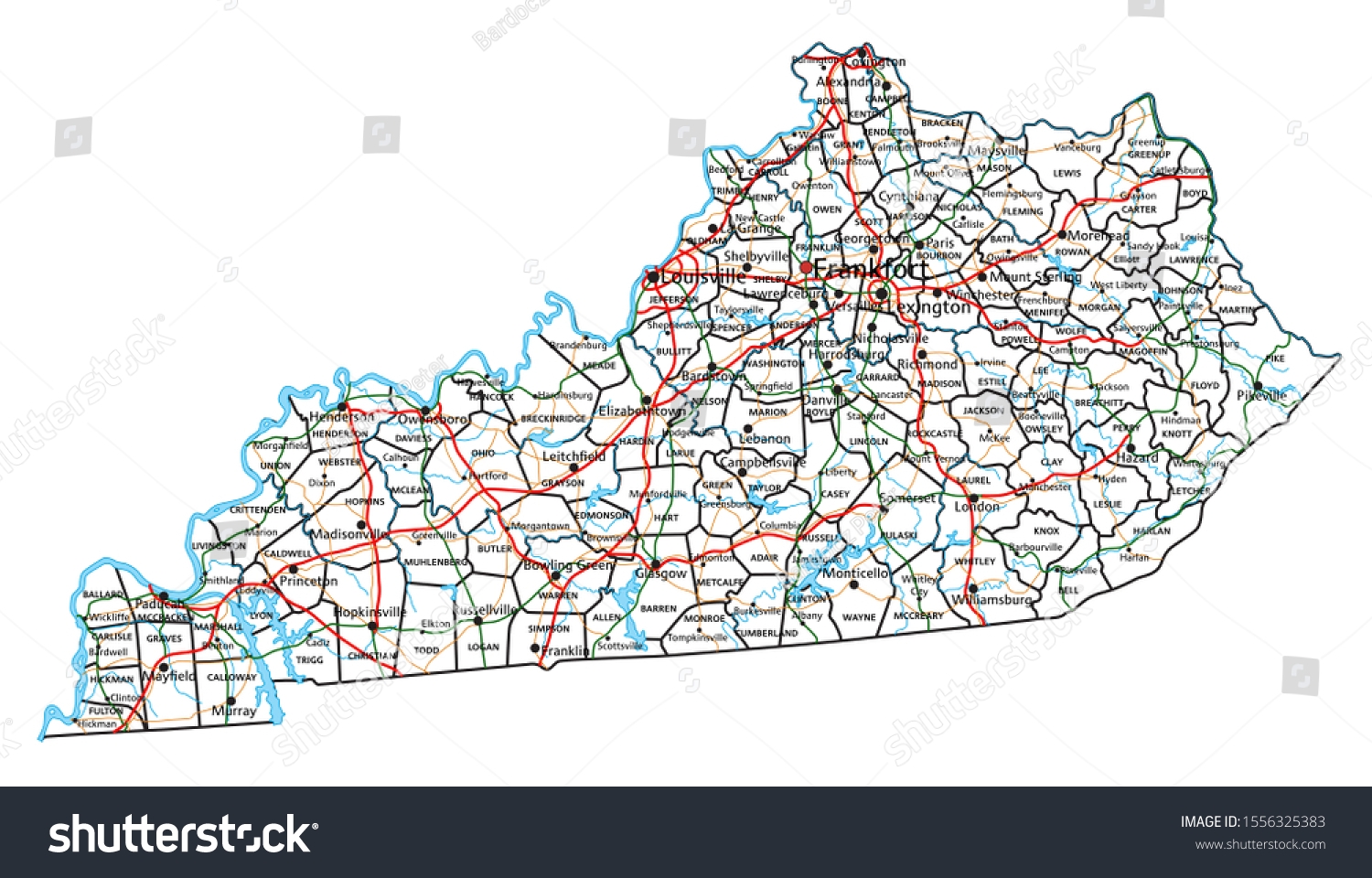 Kentucky Road Highway Map Vector Illustration Stock Vector Royalty Free 1556325383 Shutterstock