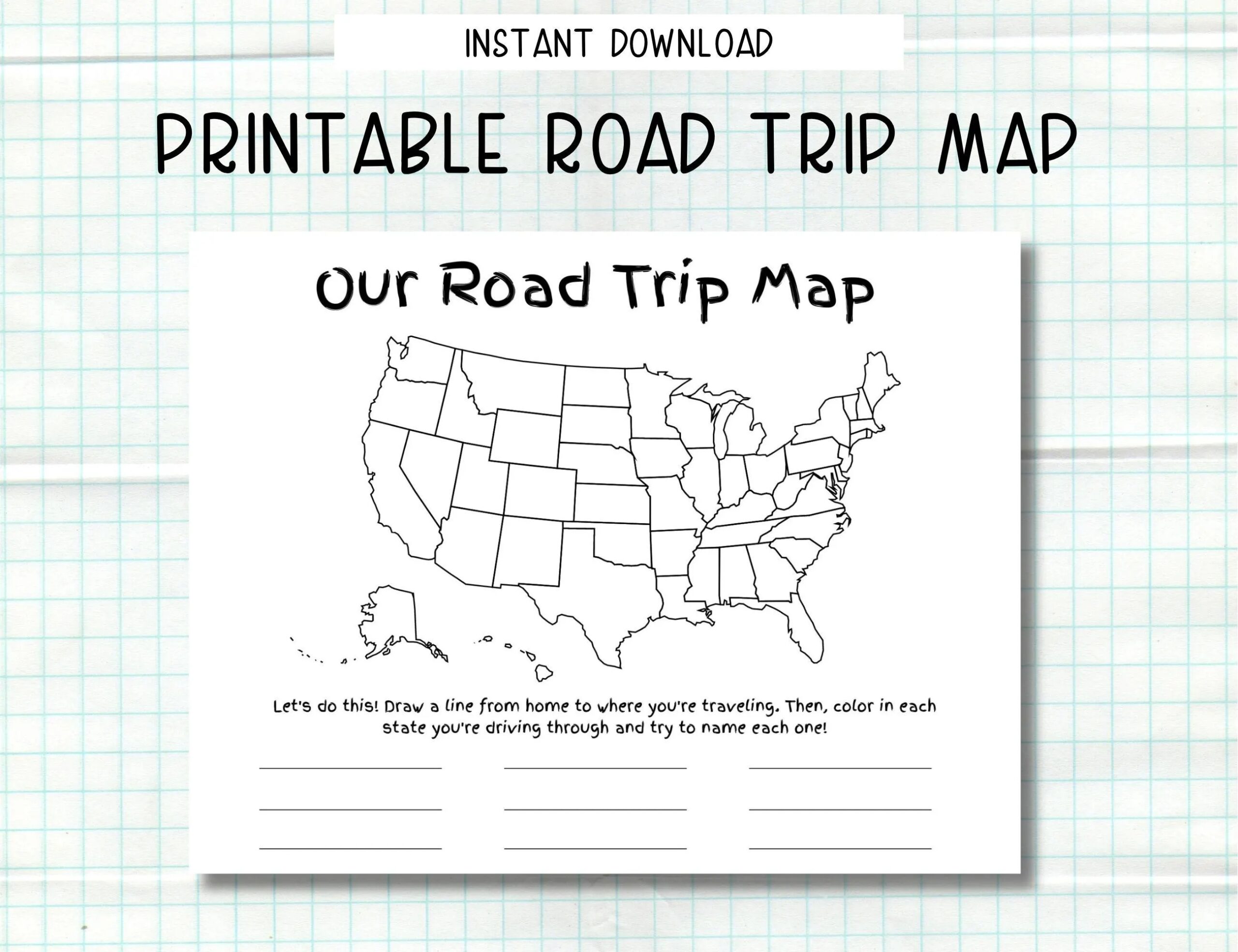 Printable Road Trip Map Kid s Road Trip Activity Instant Download Road Trip Worksheet Etsy