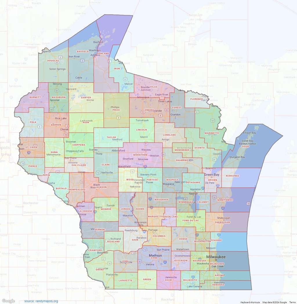 Wisconsin County Map Shown On Google Maps