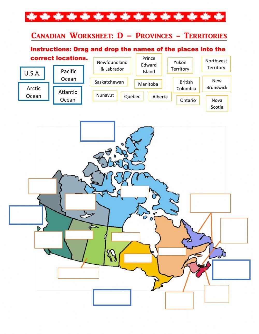 Map Of Canada Worksheet Printable