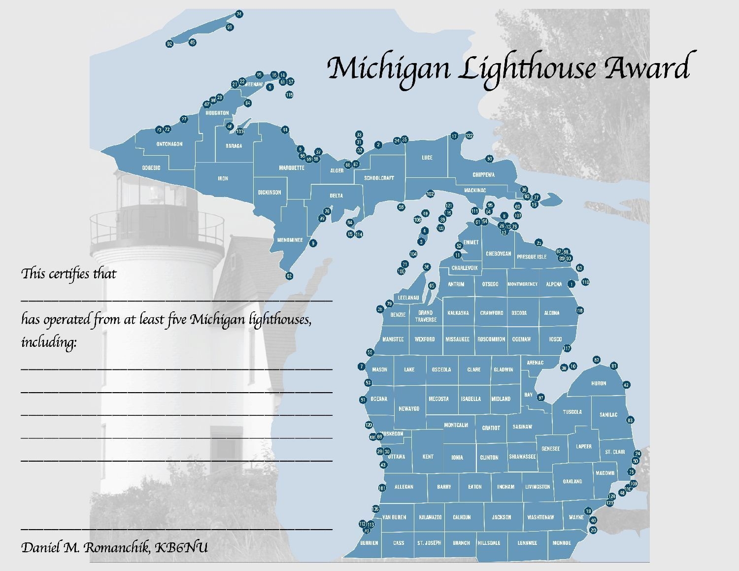 Michigan Lighthouse Map Guide Printable