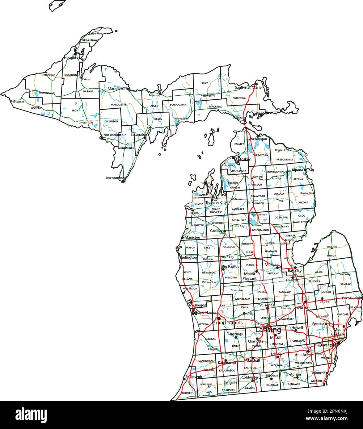 Michigan Road And Highway Map Vector Illustration Stock Vector Image Art Alamy