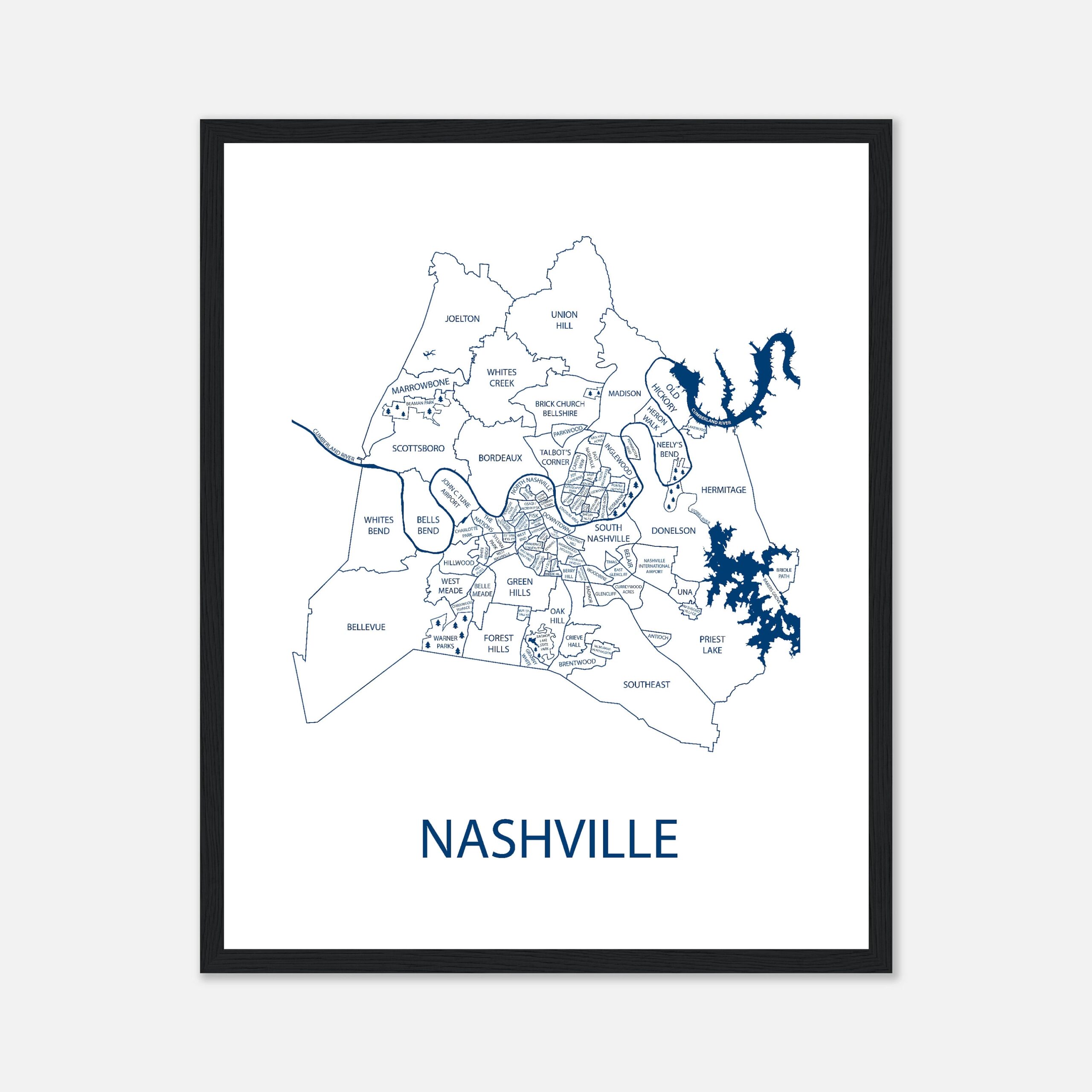 Nashville Neighborhood Map Print Map Poster Wall Art Living Room Nashville Artwork Gifts Wedding Gifts Personalized Customized Gifts Etsy