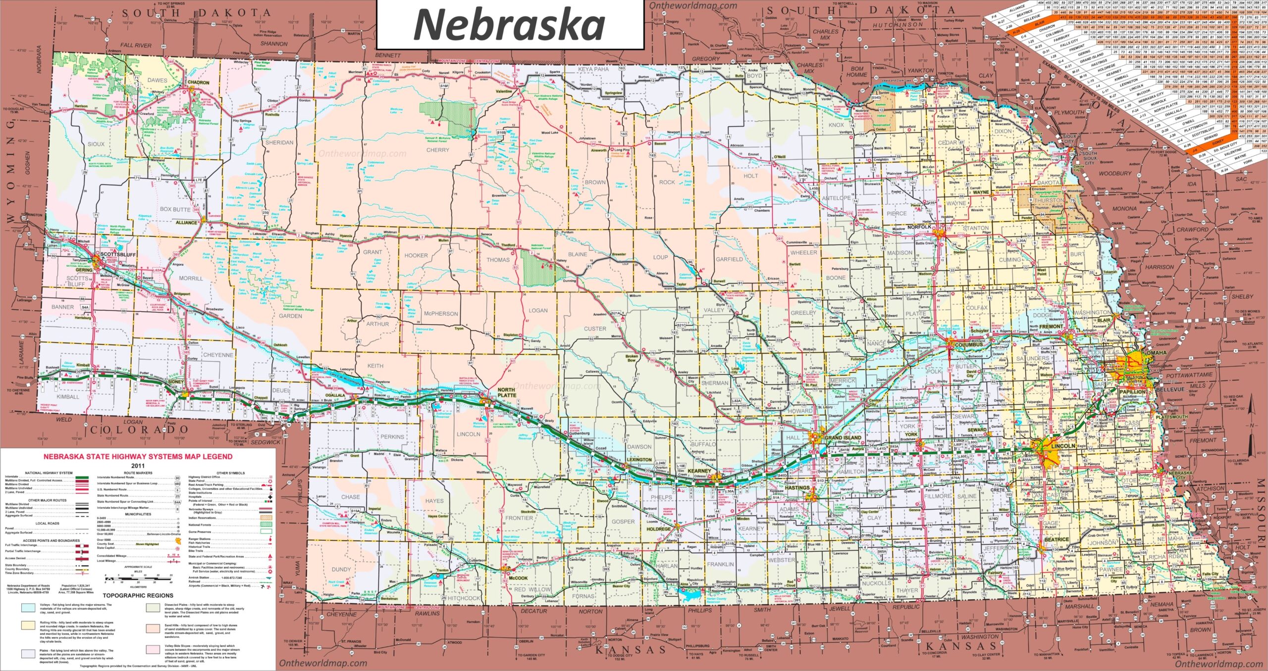 Large Detailed Tourist Map Of Nebraska With Cities And Towns Ontheworldmap