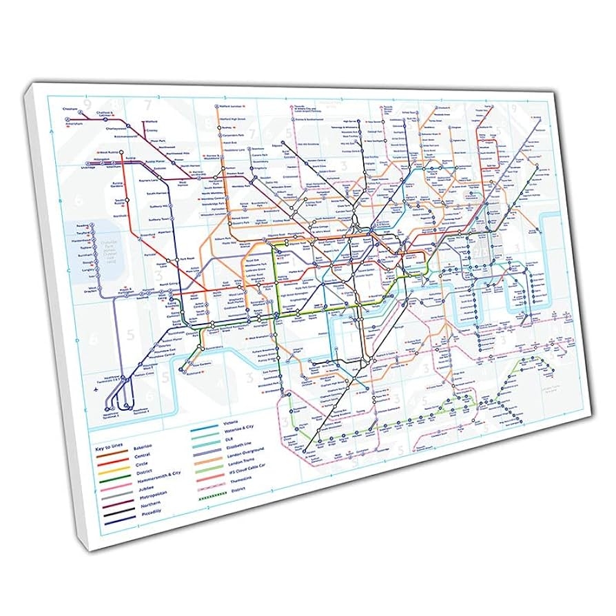 London Underground Tube Map With New Elizabeth Line Art Wall Art Print On Canvas Picture For Home Office Decor Amazon co uk Books