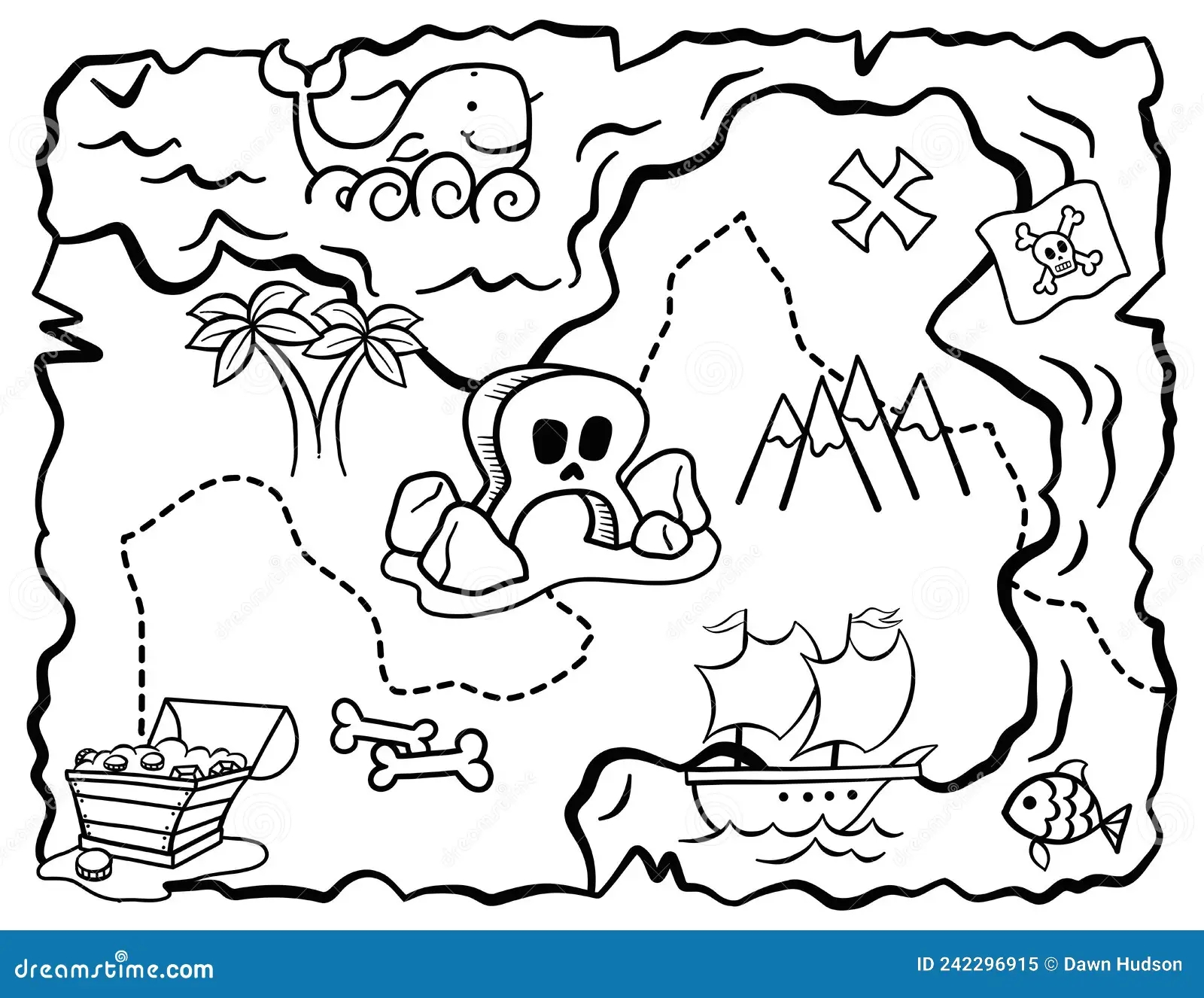 Treasure Map Pirate Adventure Coloring Page Stock Vector Illustration Of Bones Discovery 242296915