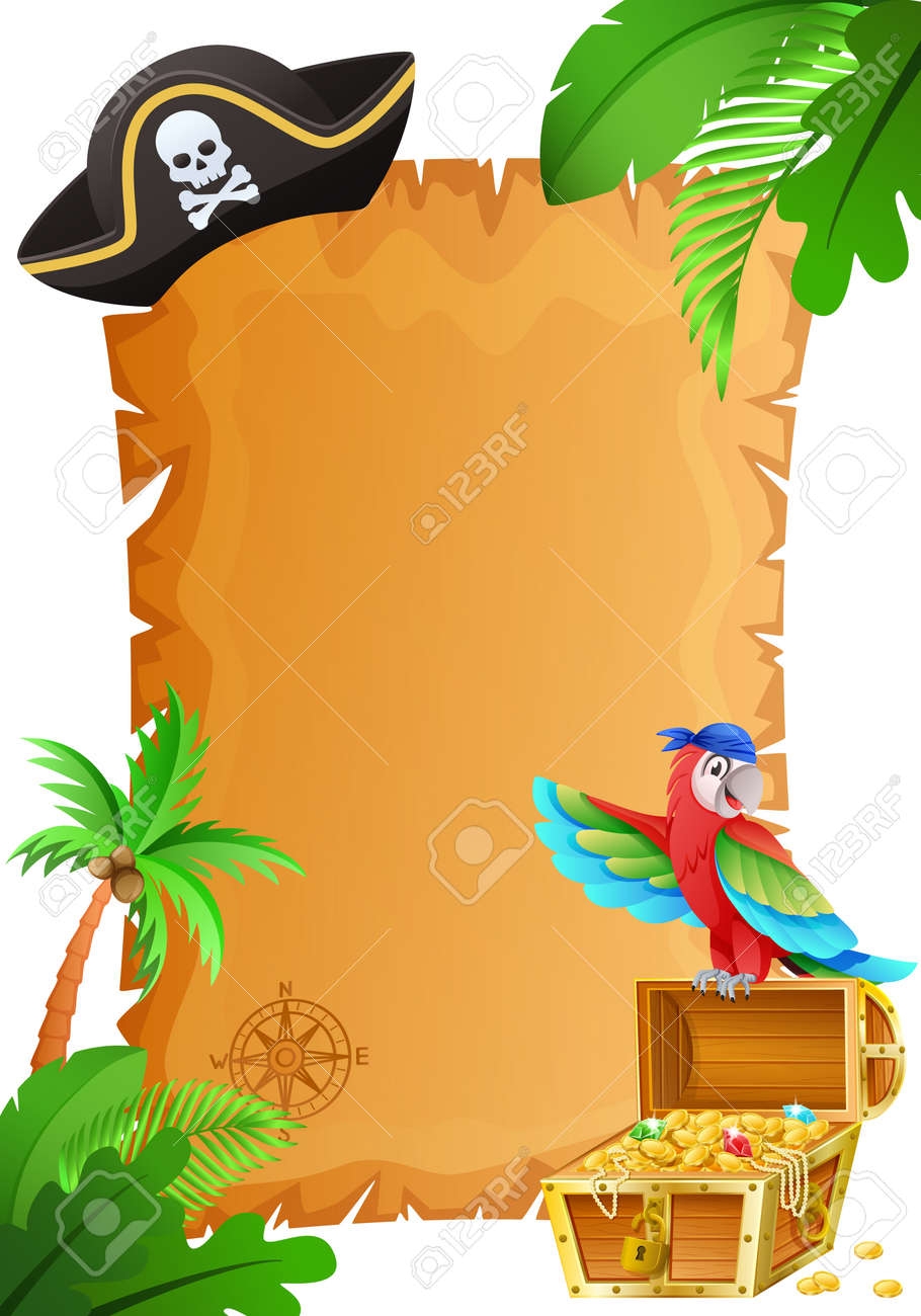 Pirate Treasure Map Template With Headdress And Palm Tree With Parrot Cartoon Vector Illustration Royalty Free SVG Cliparts Vectors And Stock Illustration Image 179061979