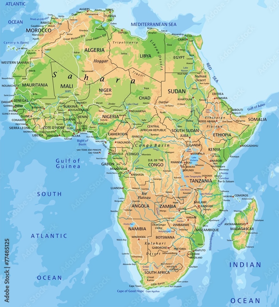 Poster High Detailed Africa Physical Map With Labeling Wall Art UkPosters