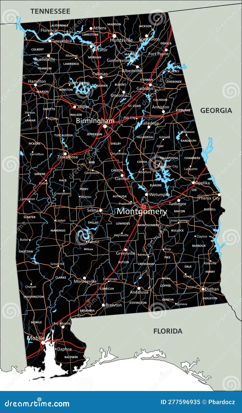 Alabama Road Map Ontheworldmap
