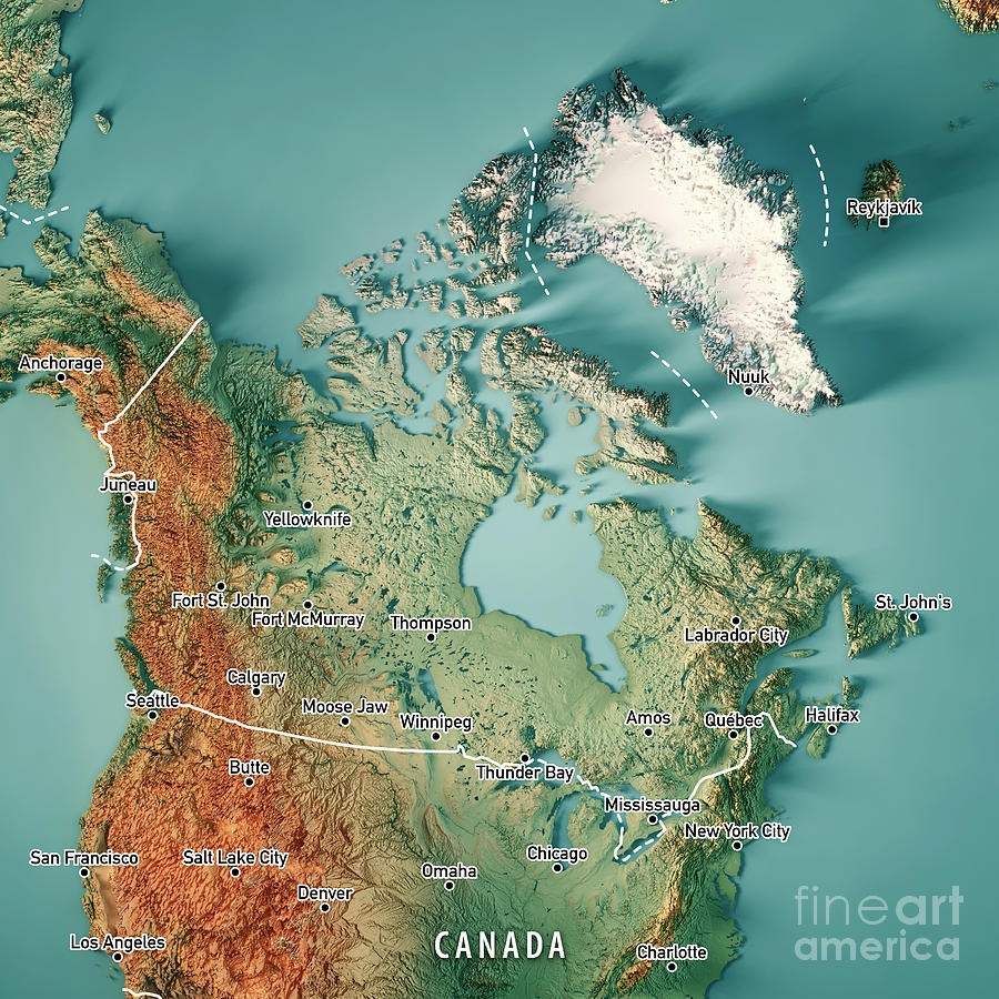 Canada 3D Render Topographic Map Border Cities By Frank Ramspott