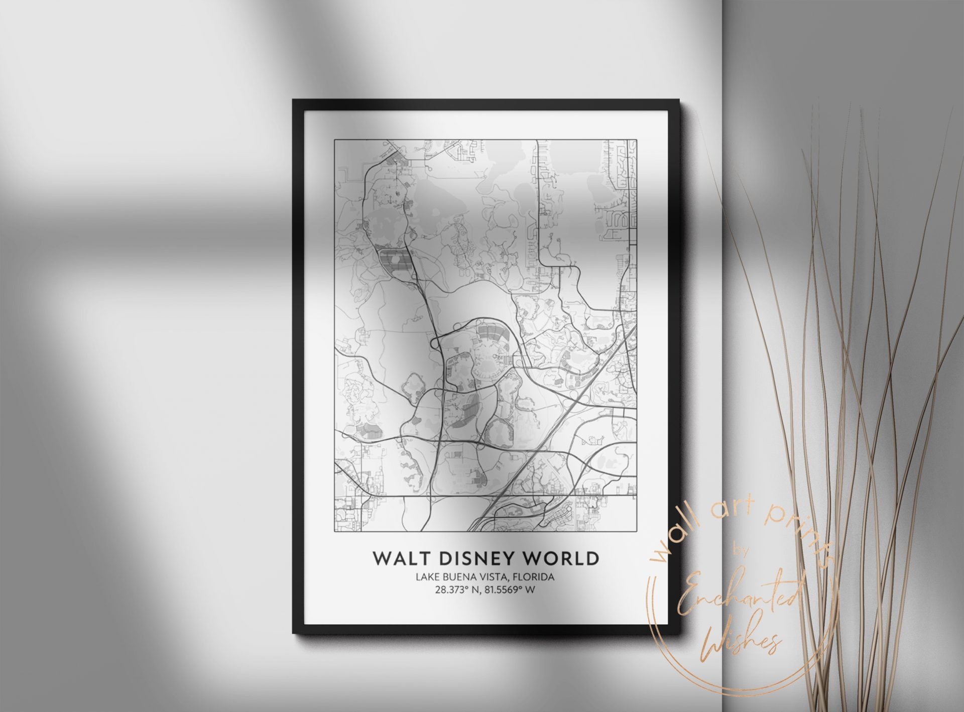 Disney World Road Map Print Printable Wall Art Or Printed Shipped