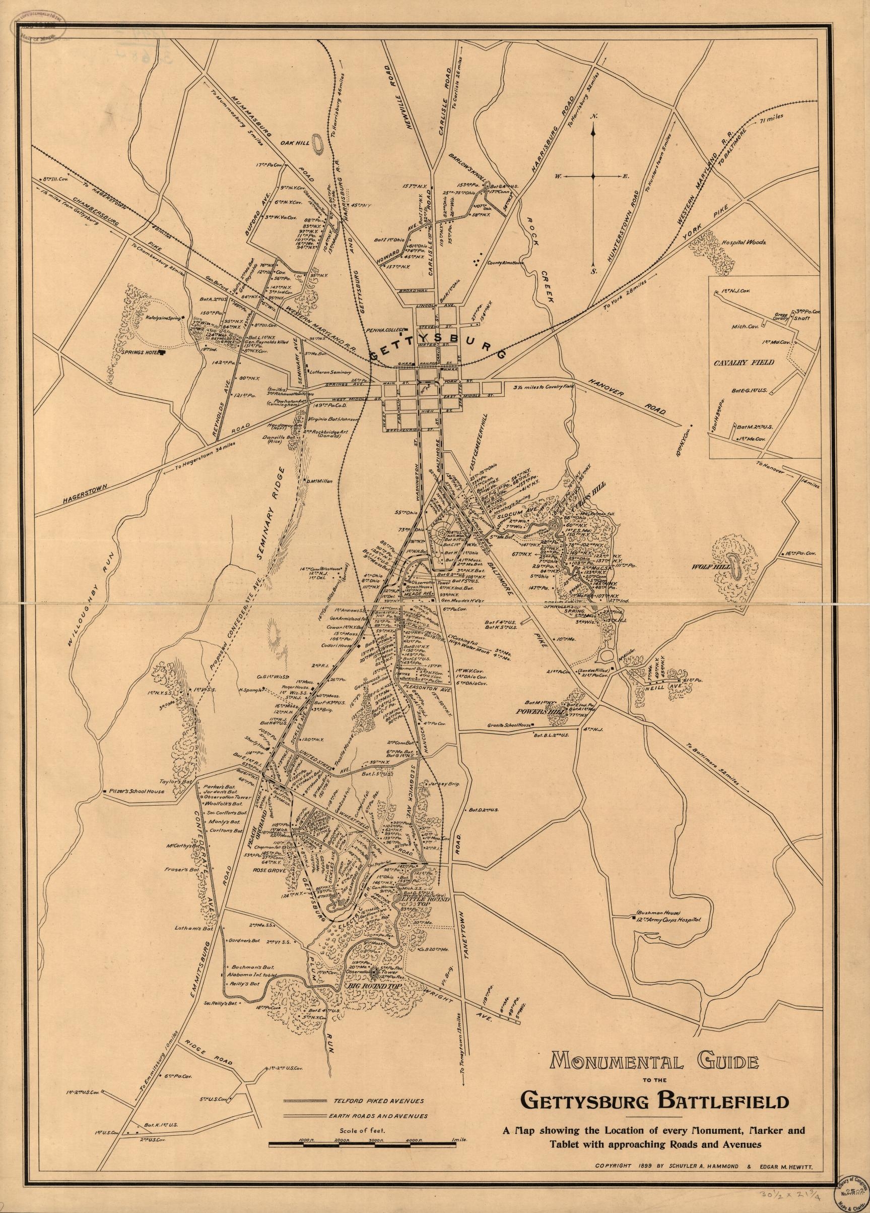 Monumental Guide To The Gettysburg Battlefield A Map Showing The Location Of Every Monument Marker And Tablet With Approaching Roads And Avenues Library Of Congress
