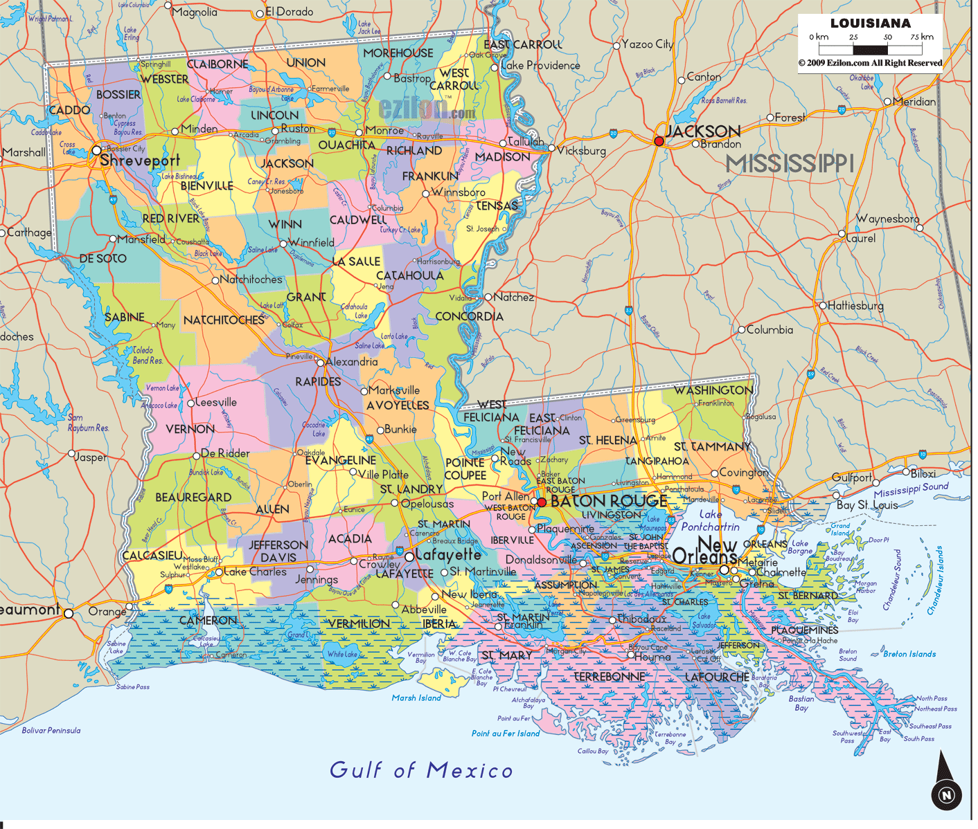 Political Map Of Louisiana State Printable Collection Thong Thai Real