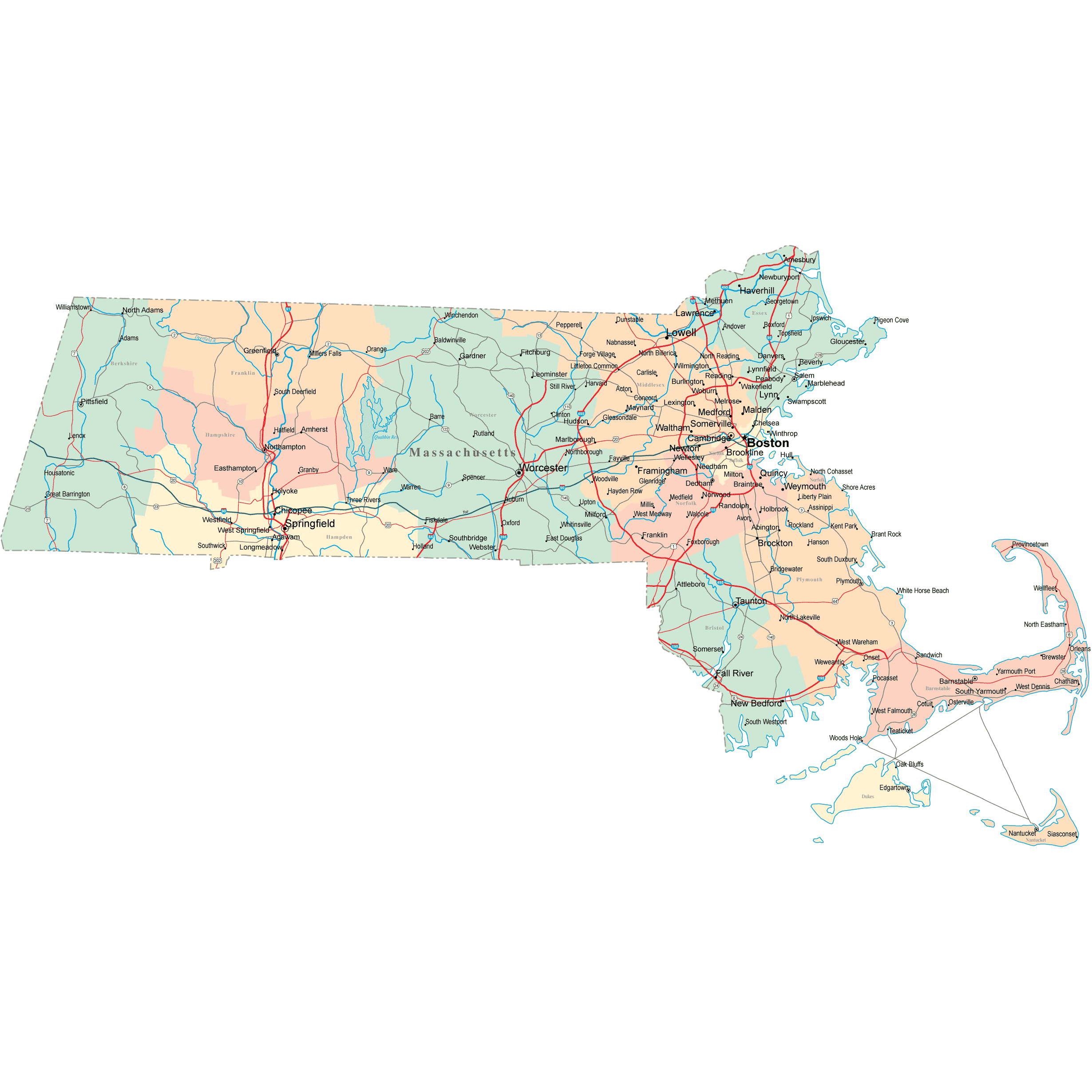 Political Map Of Massachusetts State Printable Collection Thong Thai Real