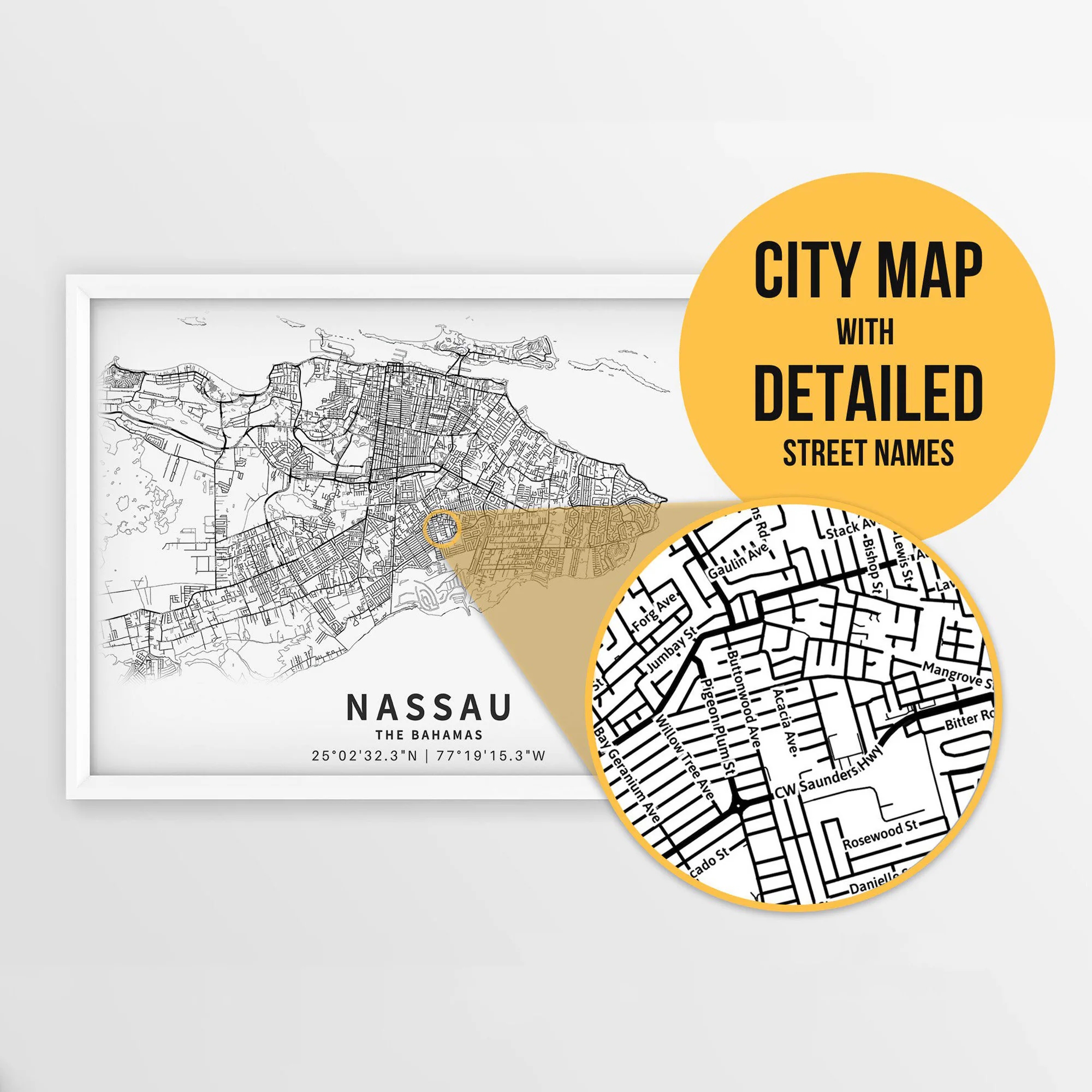 Printable Map Of Nassau The Bahamas With Street Names Instant Download City Map Travel Gift City Poster Road Map Print Wall Art Etsy