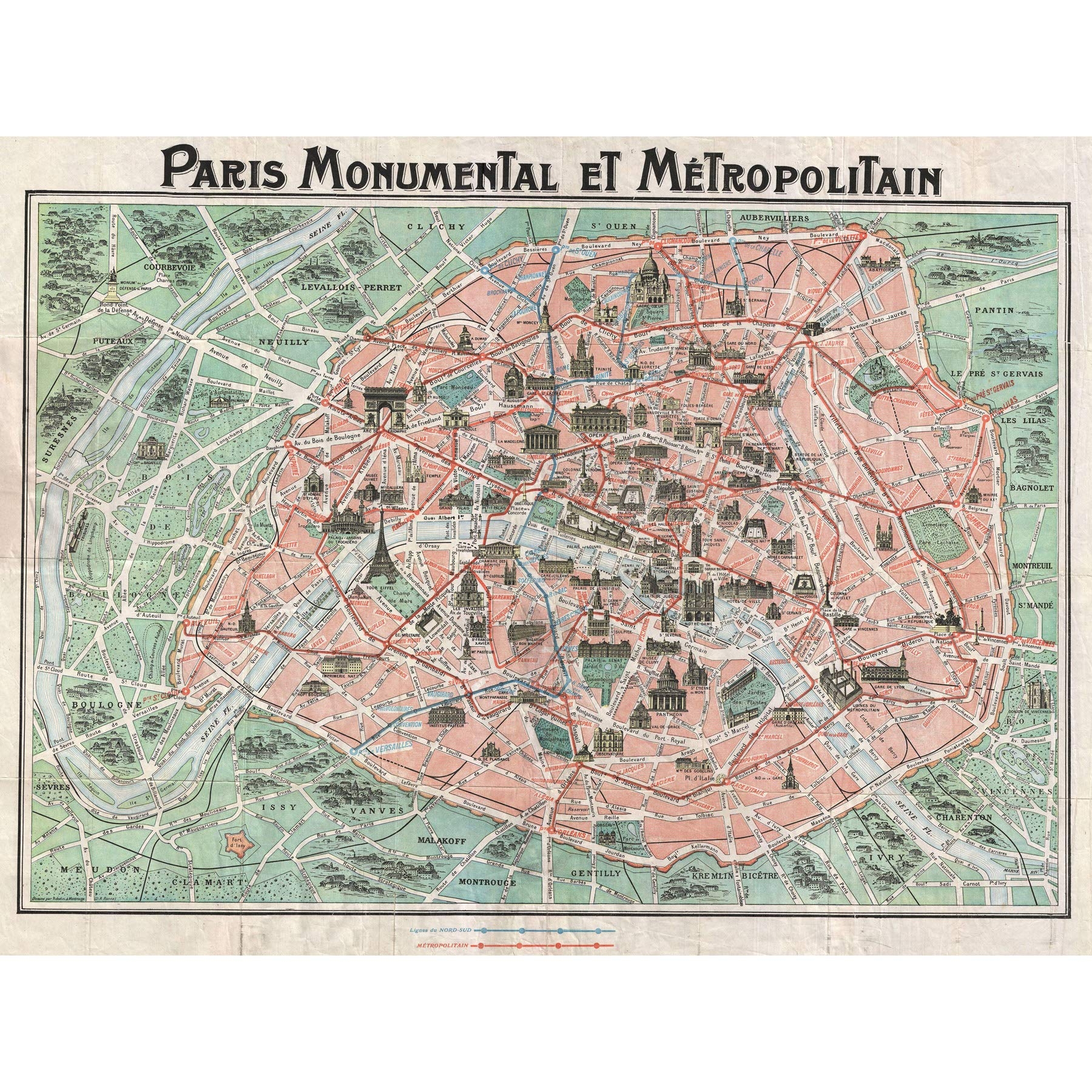 Amazon Wee Blue Coo Robelin Paris Monument Map French Large Wall Art Poster Print Thick Paper 18X24 Inch Posters Prints