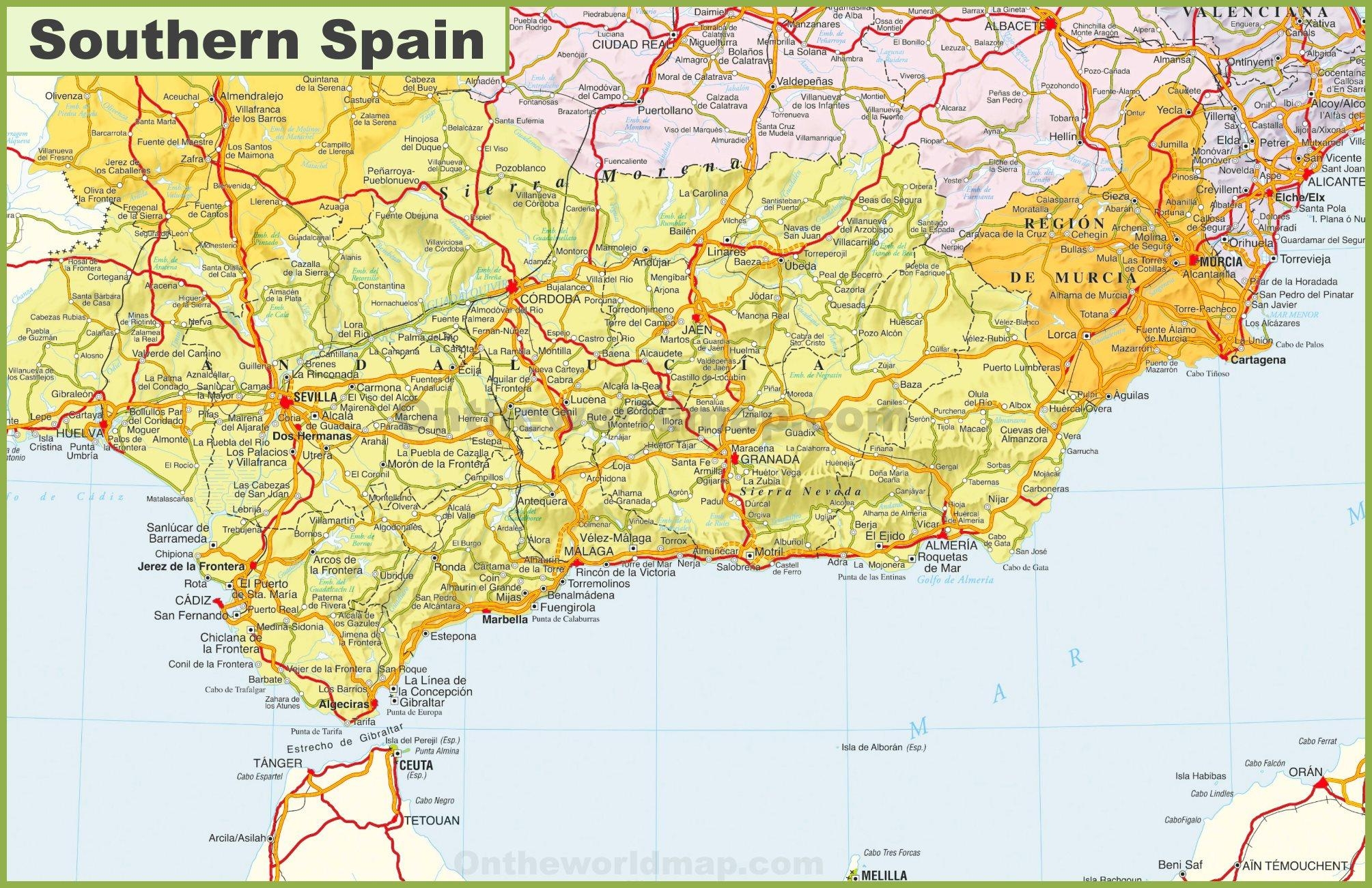 Map Of Southern Spain Detailed Map Of Southern Spain Southern Europe Europe