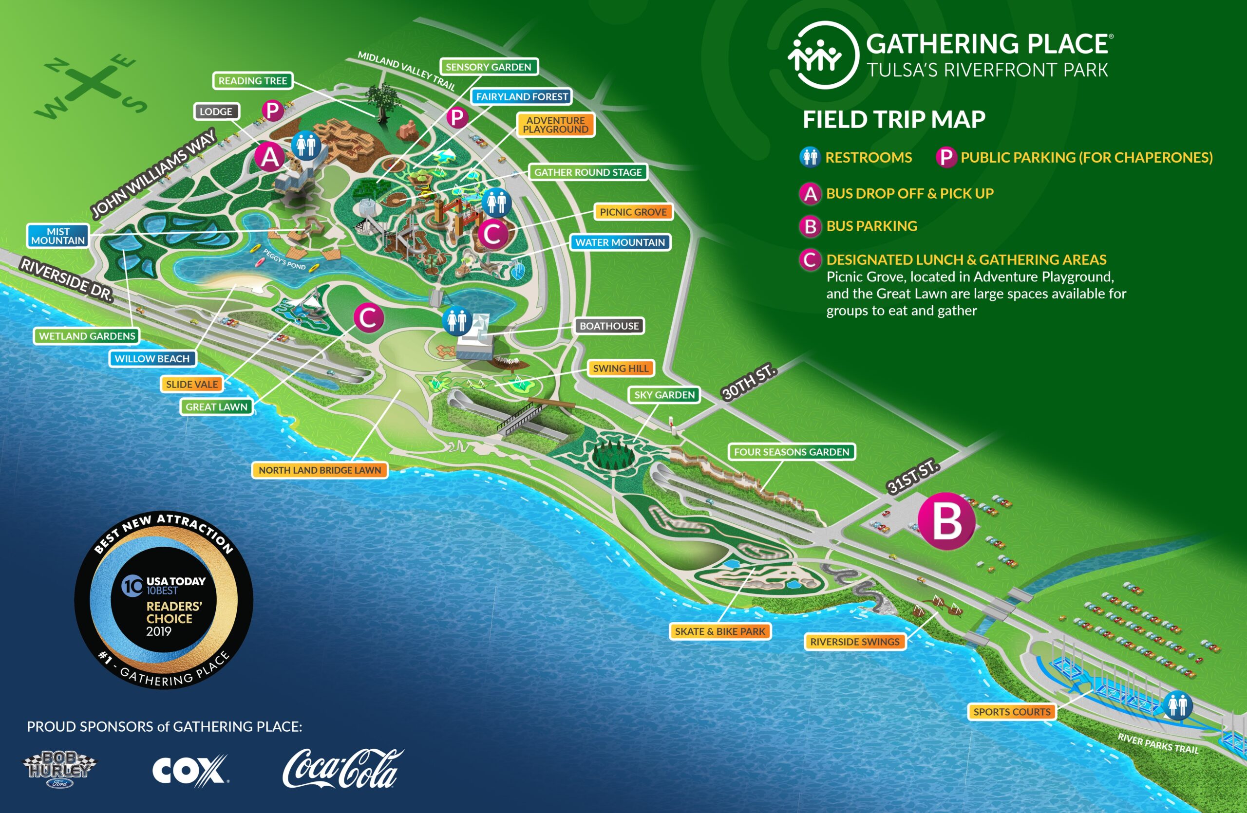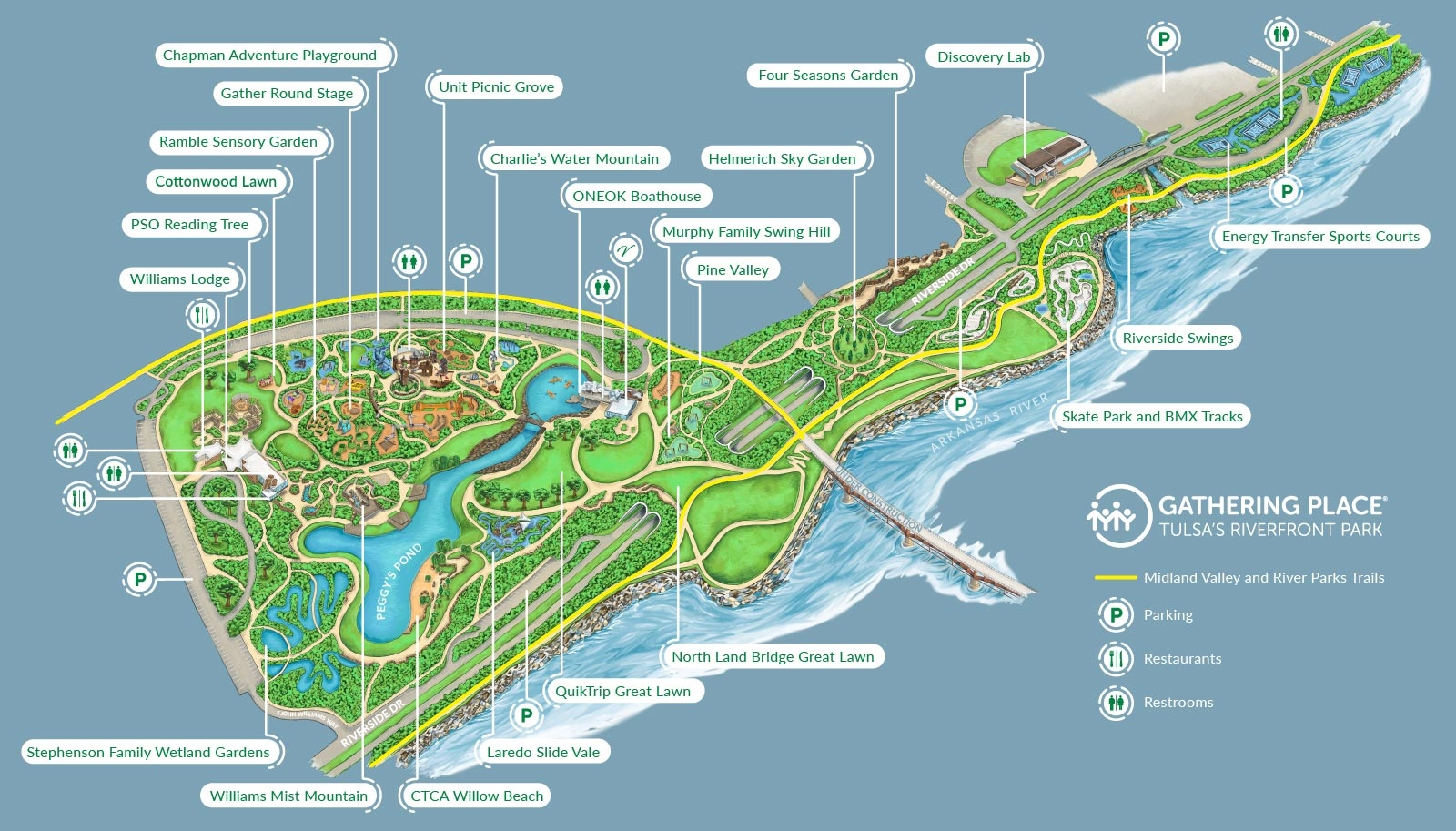 So, before you head out to explore Tulsa’s Gathering Place park, be sure to download and print a map of the area. It’s a simple yet effective way to enhance your experience and make your visit more memorable. Happy exploring!