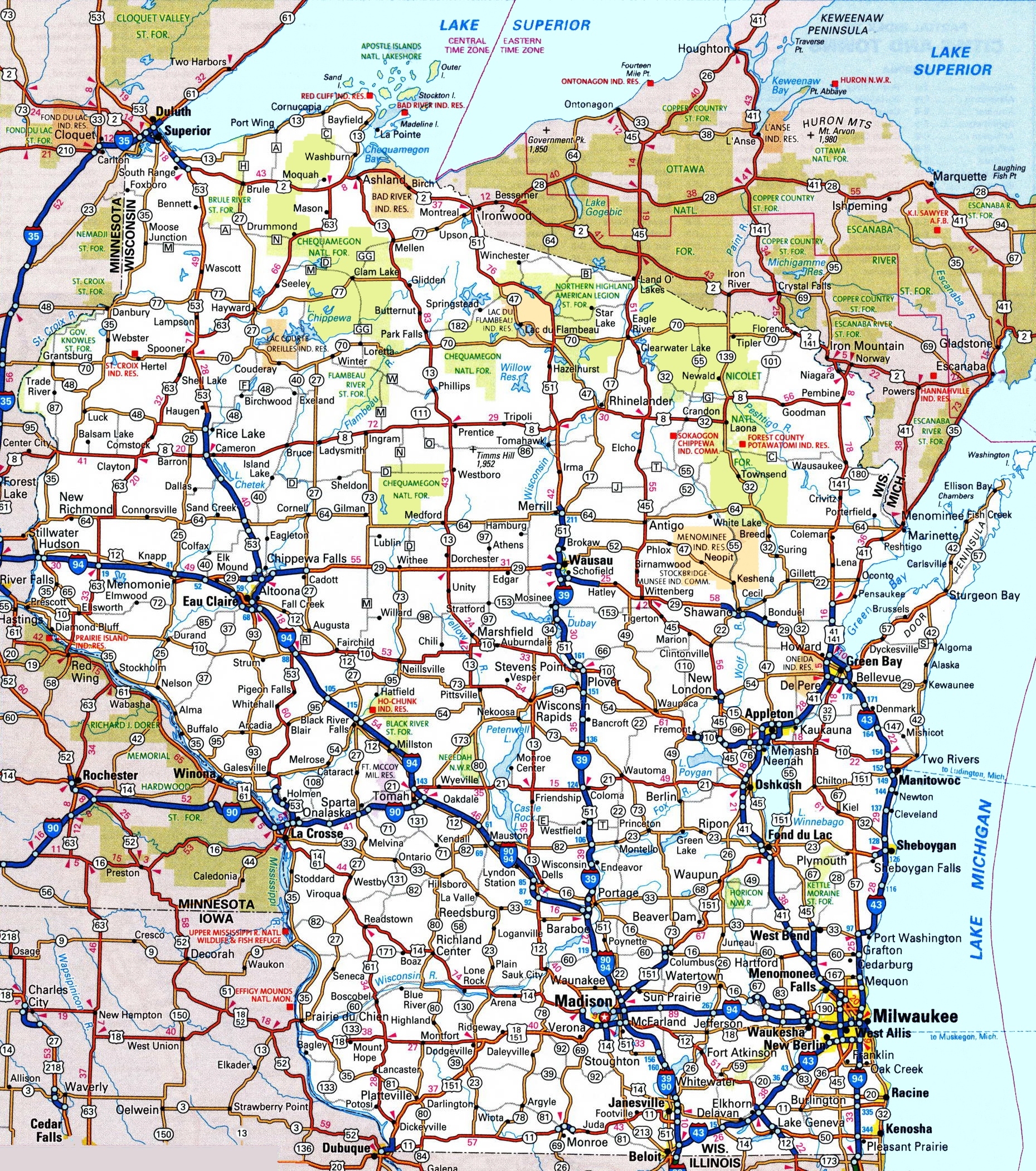 Map Of Wisconsin Cities And Roads GIS Geography