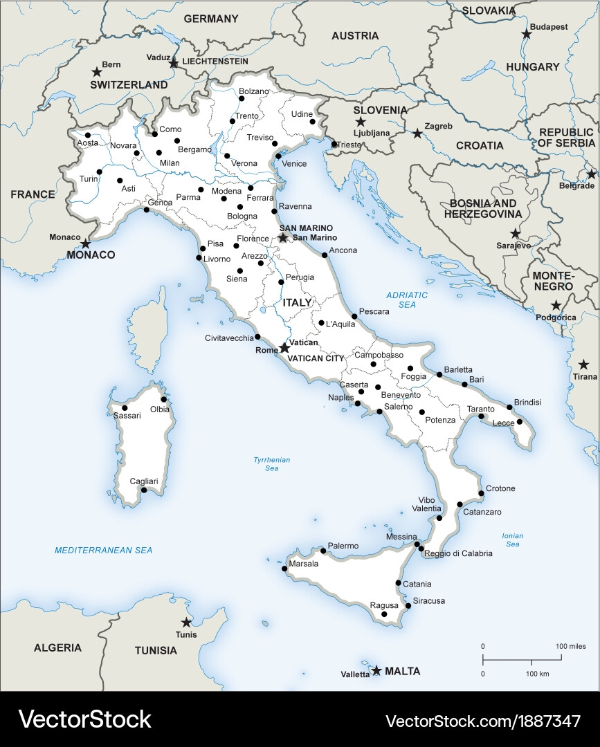Italy Political Map Royalty Free Vector Image VectorStock