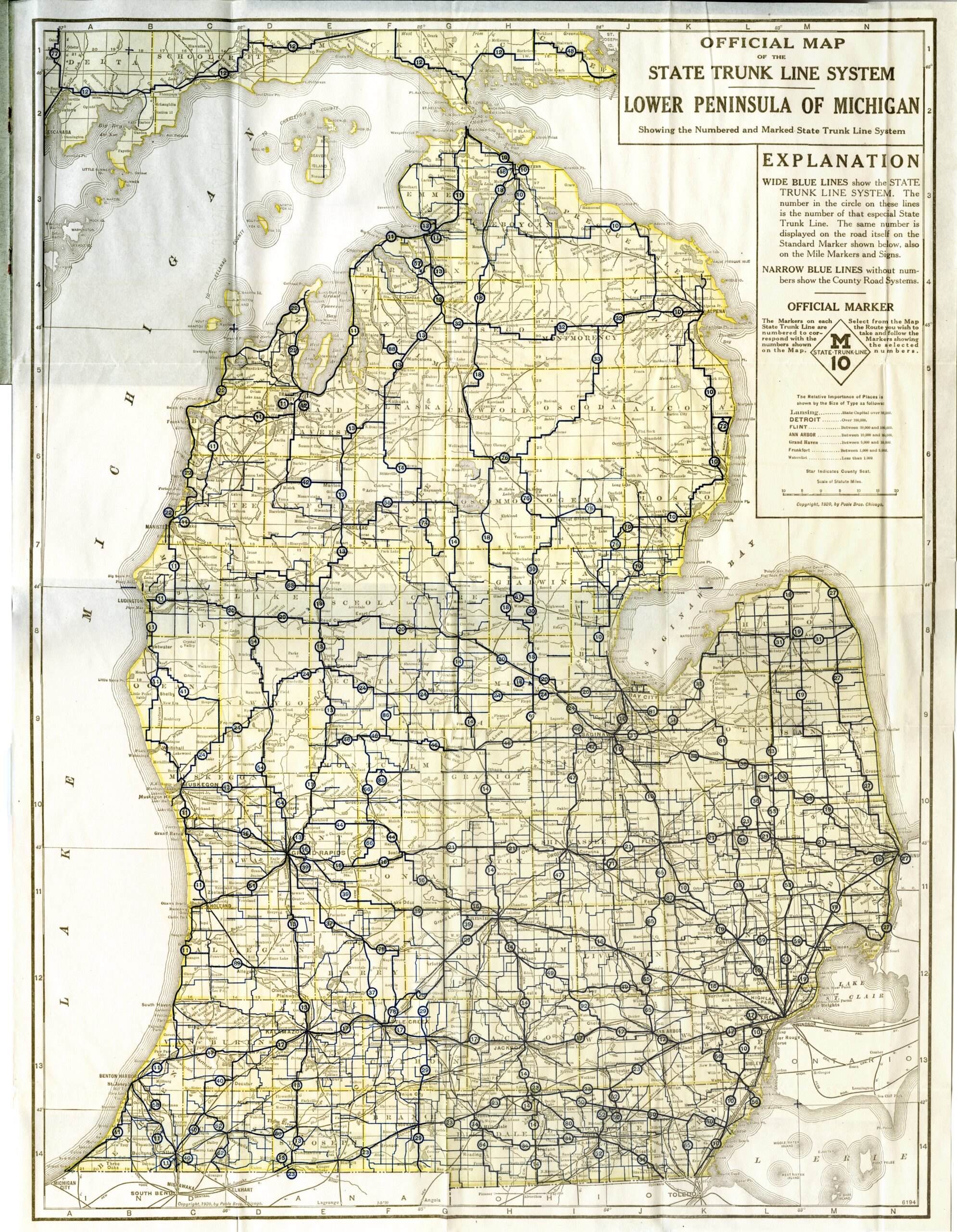 Map Of Michigan 1920 Official Road Map Lower Peninsula