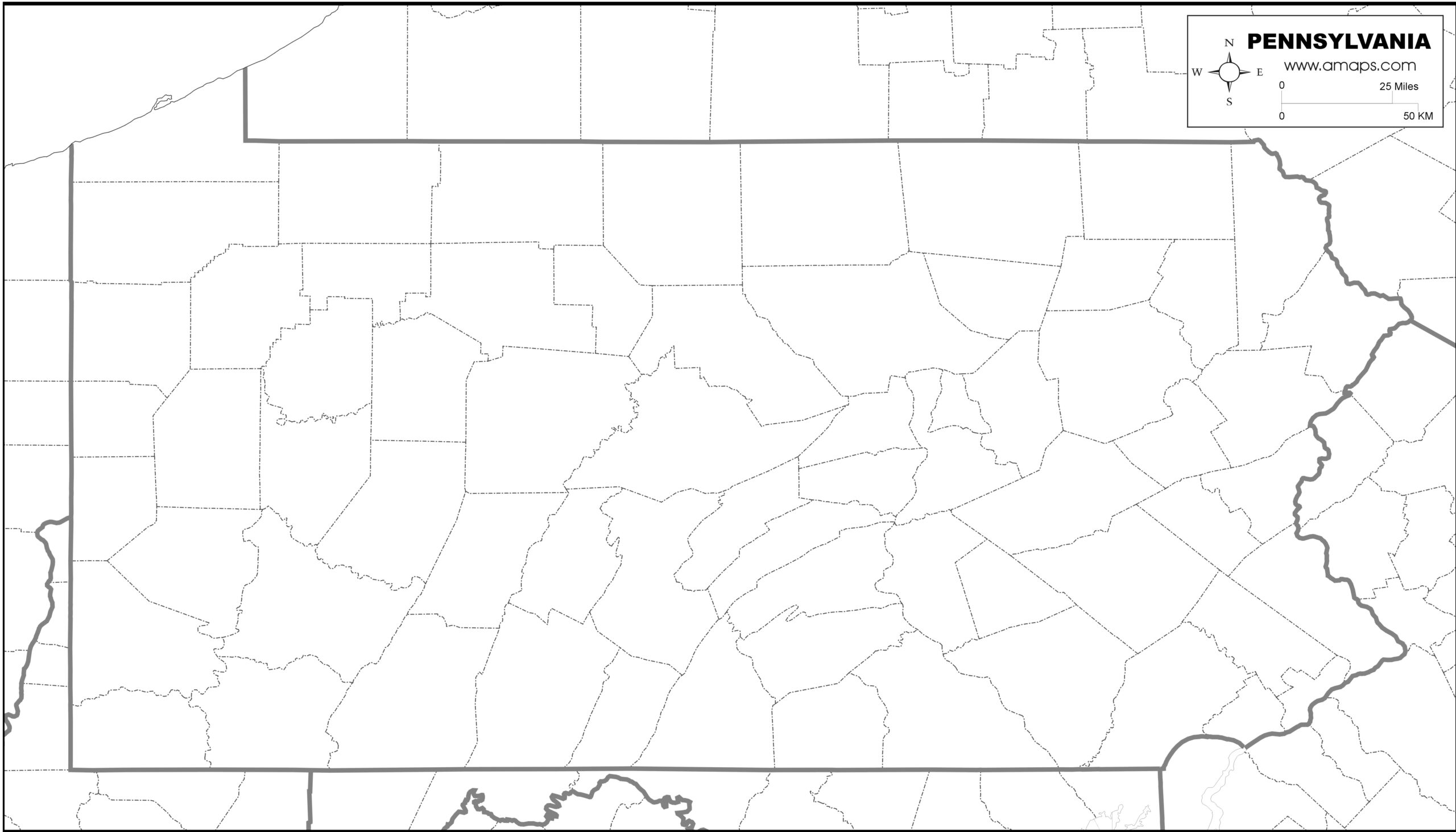 Pennsylvania State Outline Administrative And Political Vector Map In Black And White Stock Vector Image Art Alamy