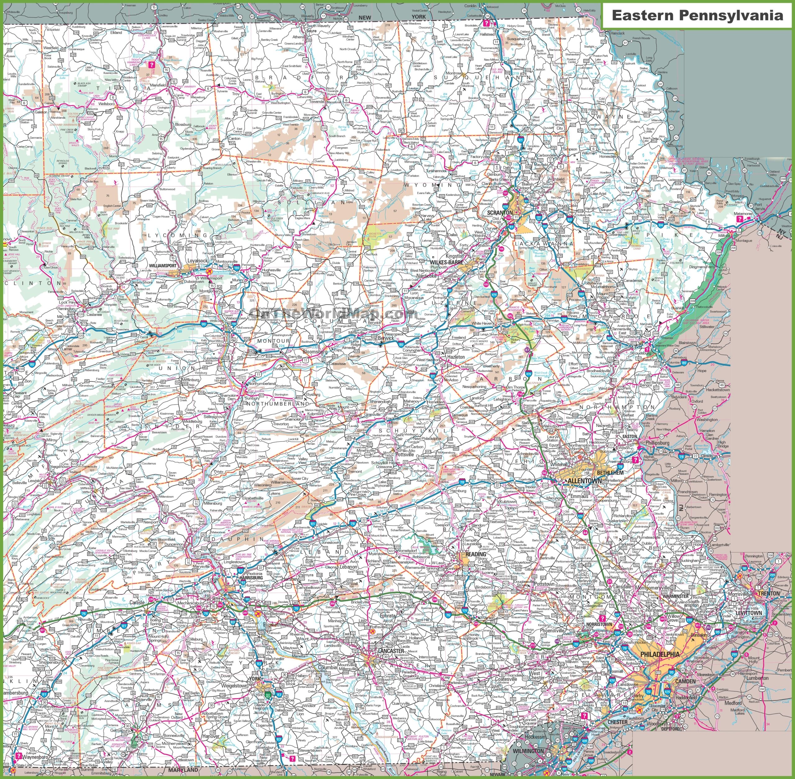 Map Of Eastern Pennsylvania Ontheworldmap
